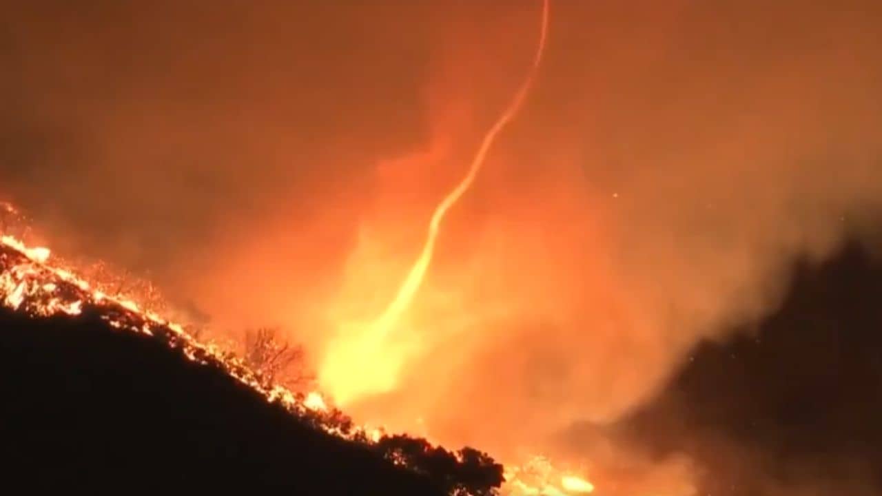 এরই মধ্যে ভয়ঙ্কর এক দৃশ্য সামনে এসেছে। ঘূর্ণিঝড় বা টর্নেডোর সময় যেমন বাতাস পাক দিয়ে আকাশ থেকে নেমে আসে, আশেপাশের সবকিছু ধ্বংস করে দেয়, তেমনই আগুনের শিখা টর্নেডোর বাতাসে মিশে আকাশে উঠতে দেখা গিয়েছে।