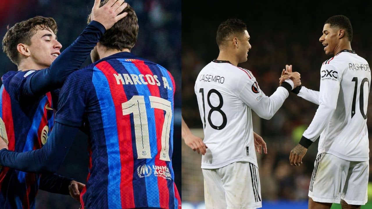 ইউরোপা লিগের রাউন্ড অব ৩২-এ বার্সেলোনার হয়ে দুটি গোল করেন মার্কোস আলেন্সো এবং রাফিনহা। (ছবি:টুইটার)