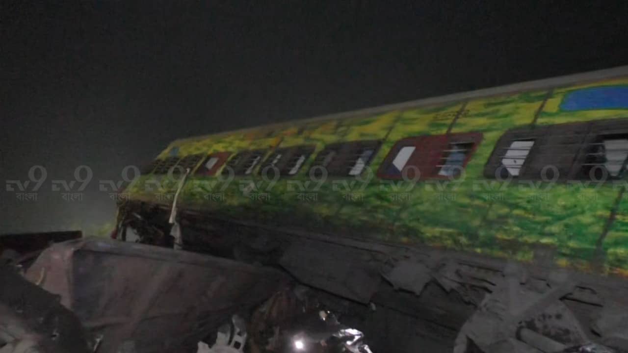 রেললাইনের উপর পুরোপুরি উল্টে পড়ে রয়েছে ট্রেনের কামরাগুলি। বেশ কিছু বগি রেললাইন থেকে ছিটকে অনেকটা দূরে গিয়ে পড়ে রয়েছে। গ্যাসকাটার ব্যবহার করে আটকে পড়া যাত্রীদের উদ্ধারের চেষ্টা চালানো হচ্ছে।
