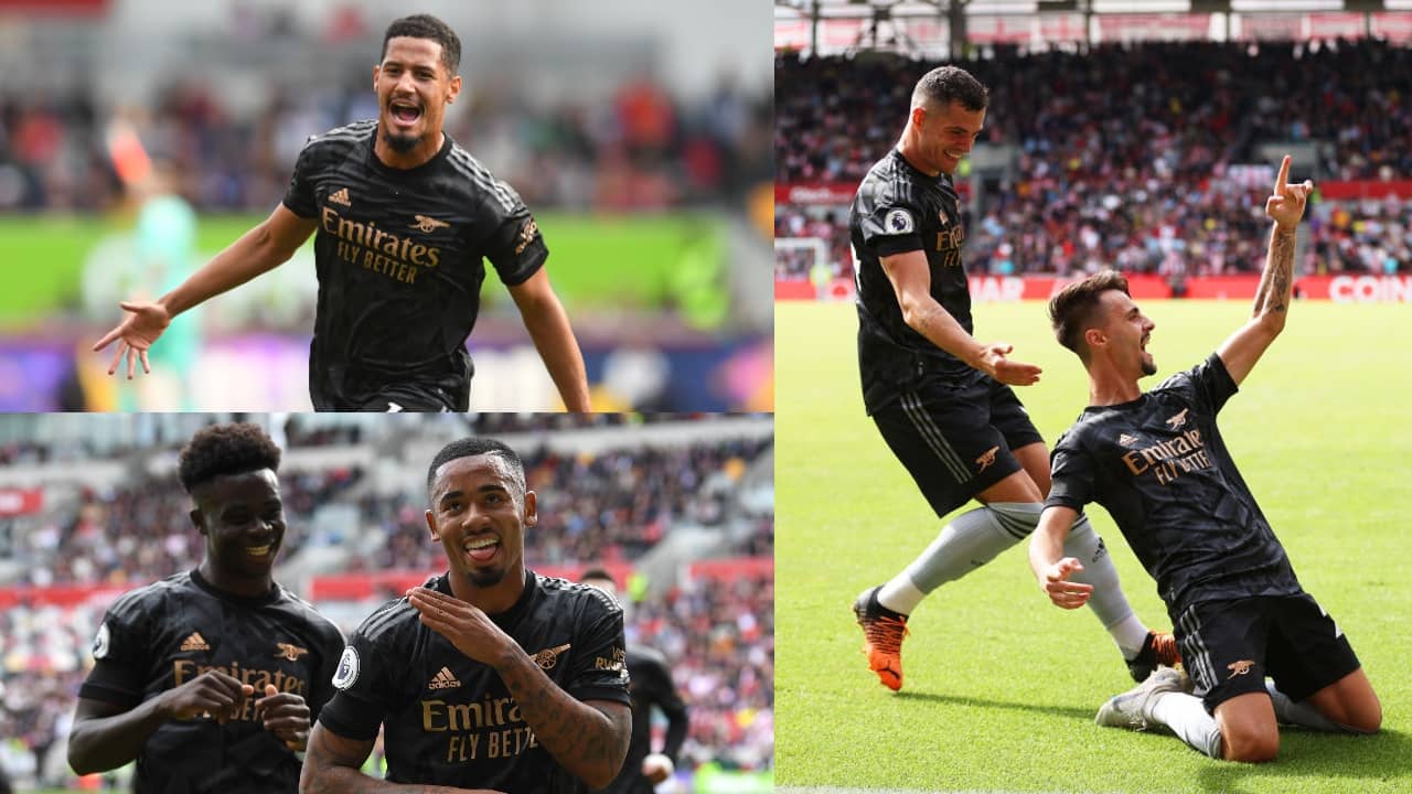ম্যাচের ১৭ মিনিটের মাথায় বুকায়ো সাকার কর্নার থেকে হেডে গোল করে আর্সেনালকে এগিয়ে দেন উইলিয়াম সালিবা (William Saliba)। (ছবি-আর্সেনাল টুইটার)