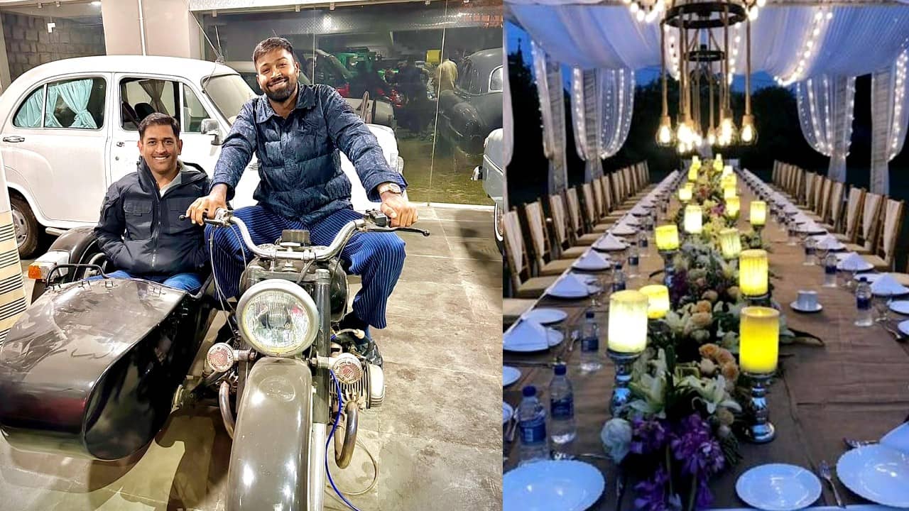 বুধবার রাত ৯টা নাগাদ সিমলিয়ায় ধোনি ম্যানসনের ডিনার পার্টিতে পৌঁছে যান হার্দিকরা। দারুণভাবে স্বাগত জানানো হয় মেন ইন ব্লু সদস্যদের।(ছবি:টুইটার)