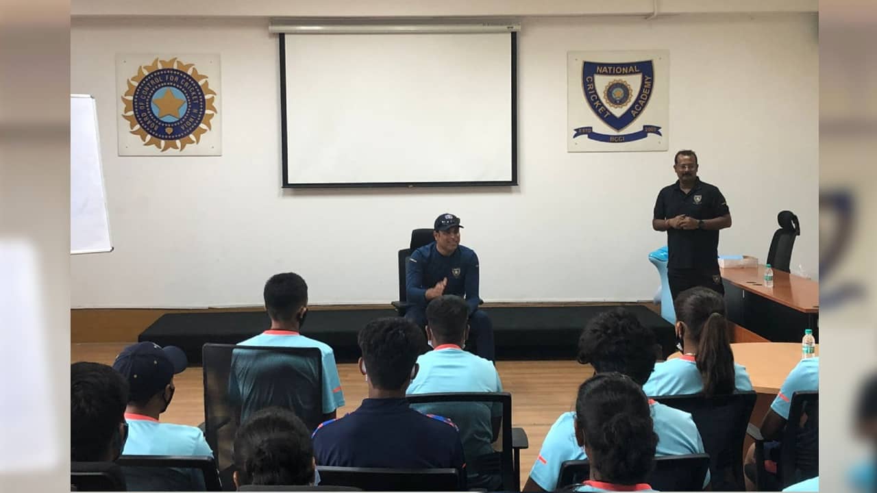 বেঙ্গালুরুর জাতীয় ক্রিকেট অ্যাকাডেমিতে (NCA) চলছে অনুর্ধ্ব-১৯ মেয়েদের ক্যাম্প। সেখানে ভারতের আগামী প্রজন্মের ক্রিকেটারদের ক্লাস নিলেন জাতীয় ক্রিকেট অ্যাকাডেমির প্রধান ভিভিএস লক্ষ্মণ (VVS Laxman)। (ছবি-বিসিসিআই টুইটার)