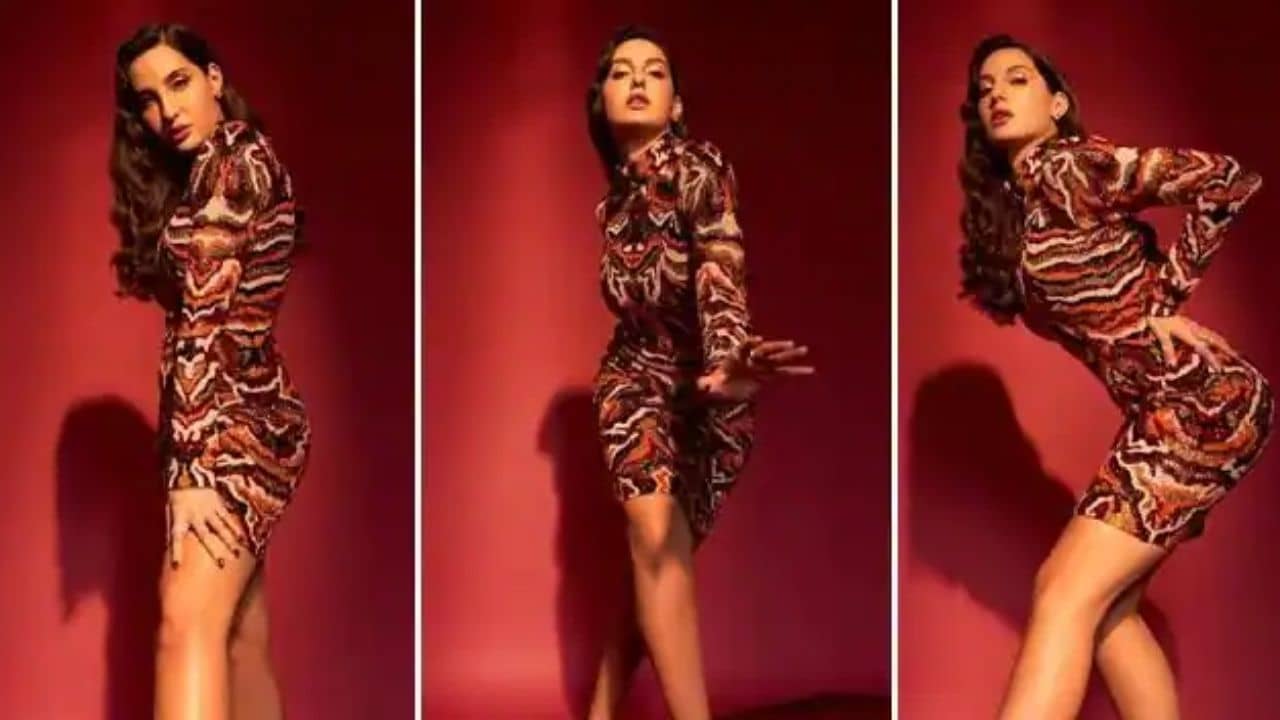 নোরা ক্যামেরার সামনে তাঁর নমনীয়তার পাশাপাশি শরীরের কার্ভসও দেখিয়েছেন। নোরা বহু রঙের বডিকন পোশাকের সঙ্গে বাদামী রঙের পাম্প স্টিলেটো ক্যারি করেছিলেন।