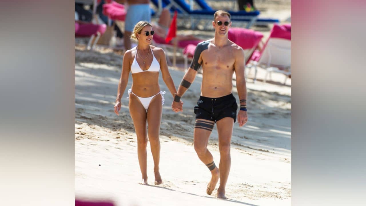 বার্বাডোজে সমুদ্রতীরে স্ত্রী ও পুত্রের সঙ্গে দেখা গেল প্রাক্তন ম্যাঞ্চেস্টার তারকাকে। তাঁর স্ত্রী কিমবার্লিকে দেখা গেল ধবধবে সাদা বিকিনিতে। ছবি: টুইটার
