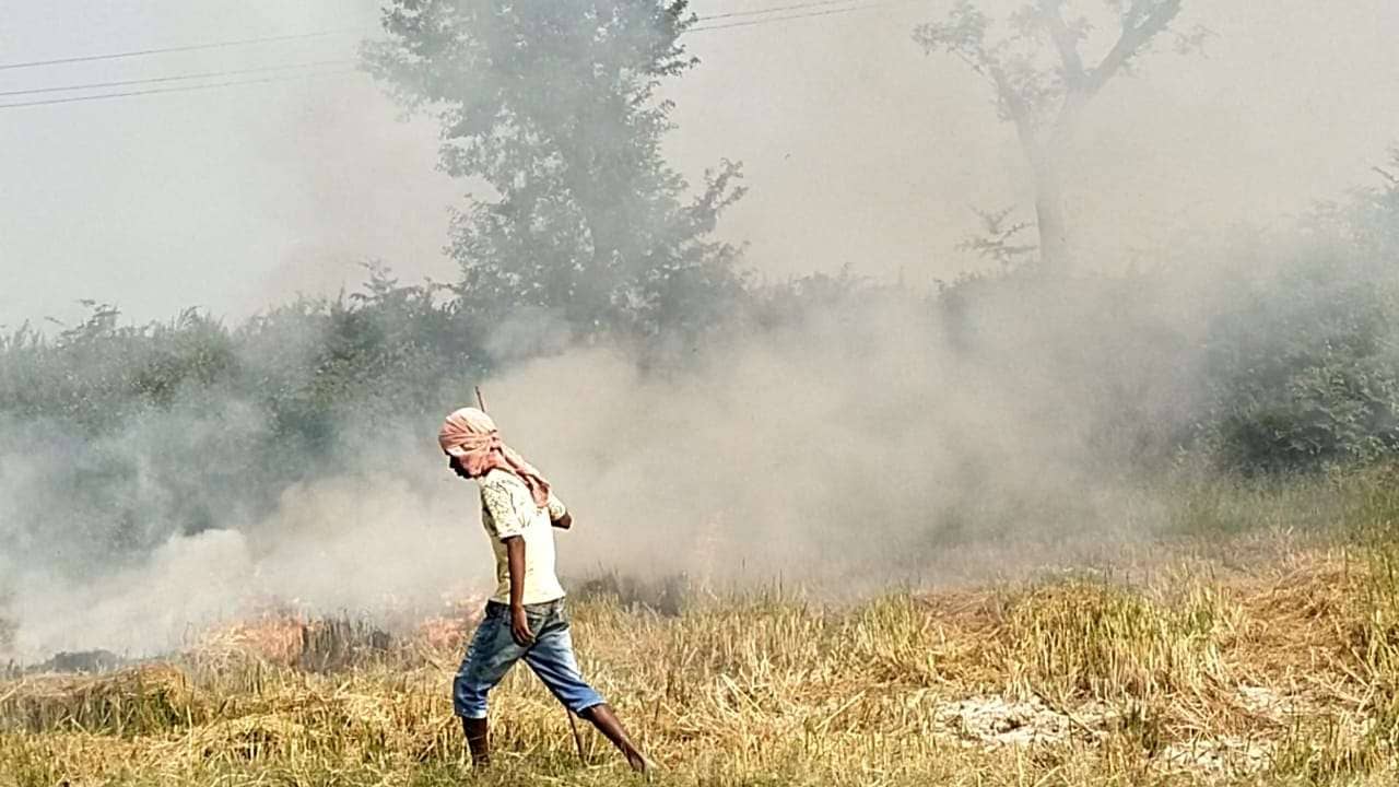 বিঘের পর বিঘে ধানের জমিতে জ্বলছে আগুন! ধোঁয়ায় ঢাকছে গোটা এলাকা ছড়াচ্ছে দূষণ, হুঁশ নেই কারও। আইনকে বুড়ো আঙুল দেখিয়ে অবাধে চলছে ধানকাটার পর জমিতে 'নাড়া'পোড়ানো।নষ্ট হচ্ছে জমির উর্বরতা,বাড়ছে পরিবেশ দূষণ হুঁশ নেই কৃষক থেকে প্রশাসনের। পশ্চিম মেদিনীপুর জেলার চন্দ্রকোনার দিগন্ত বিস্তৃত মাঠে দেখা গেল এমনই অসচেতনতার ছবি। শুধু চন্দ্রকোনা নই এ ছবি জেলার সর্বত্রই। শুরু হয়েছে মাঠ থেকে পাকা ধান বাড়িতে তোলার কাজ। বর্তমানে শ্রমিকের অভাব, খরচ ও সময় বাঁচাতে চাষিরা ধান কাটার কাজে ব্যবহার করছেন কম্বাইন হারভেস্টার মেশিন। মেশিনে ধান কাটার পর জমিতে রয়ে যায় ধান গাছের বড় বড় নাড়া ও খড়। তাতে আগুন লাগিয়ে জমি পরিষ্কার করে পুনরায় চাষ করার প্রস্ততি শুরু হয়েছে মাঠ জুড়ে।