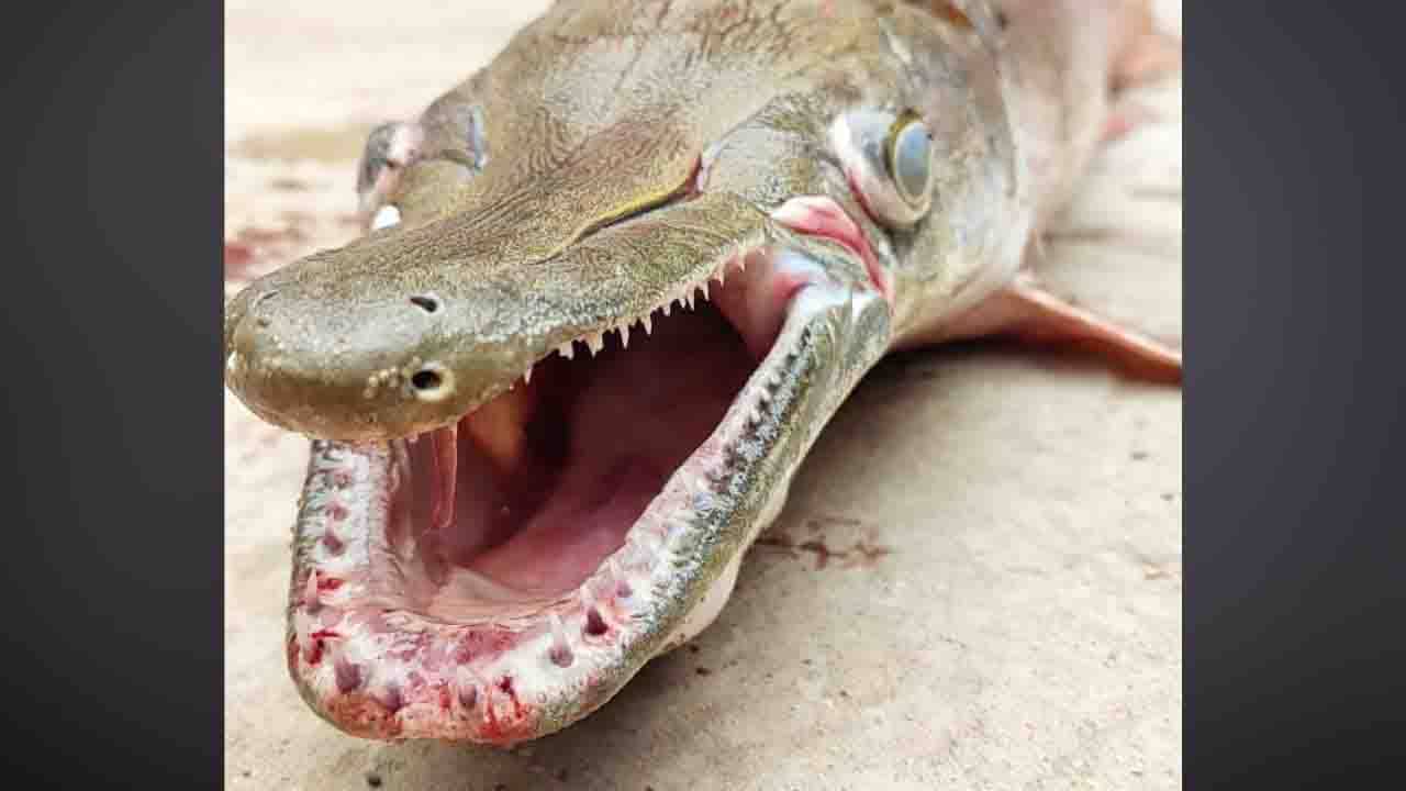 দক্ষিণ ২৪ পরগনা: জাতিতে মাছ, দেখতে কুমিরের মতো। এমন বিরল মাছের মুখে রয়েছে ভয়ঙ্কর দাঁত। আচমকা দেখলে পিরানহা মাছের কথা মনে পড়ে। তবে পিরানহার আকার ছোট। এই মাছের আকার বৃহত্। জানা গিয়েছে, এই মাছের নাম 'অ্যালিগেটর গার' বা সাদা বাংলায় 'কুমির মাছ'। বৃহস্পতিবার সকালে, লেনিন নগরের ঘাটের কাছে মৃত অবস্থায় মাছটিকে খালের জলে ভাসতে দেখেন স্থানীয়া বাসিন্দারা। পরে মাছটিকে জল থেকে ডাঙায় তুলে নিয়ে আসা হয়।