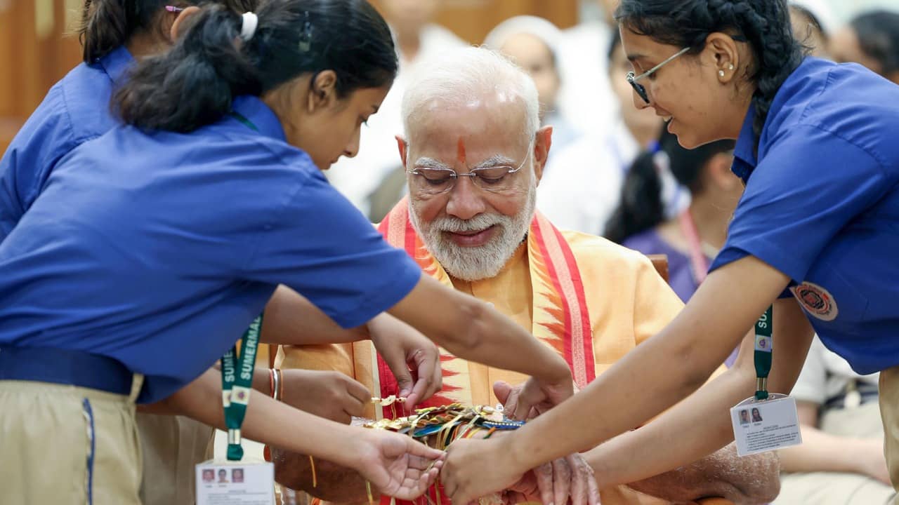 শিশুদের সঙ্গে তাদের মতো করে মিশে যেতে পারেন প্রধানমন্ত্রী নরেন্দ্র মোদী। শিশুরা তাঁকে তাদেরই একজন ভাবে। এদিন লোককল্যাণ মার্গে প্রধানমন্ত্রীর বাসভবনে রাখিবন্ধন উৎসবে সেই ছবিই দেখা গেল।