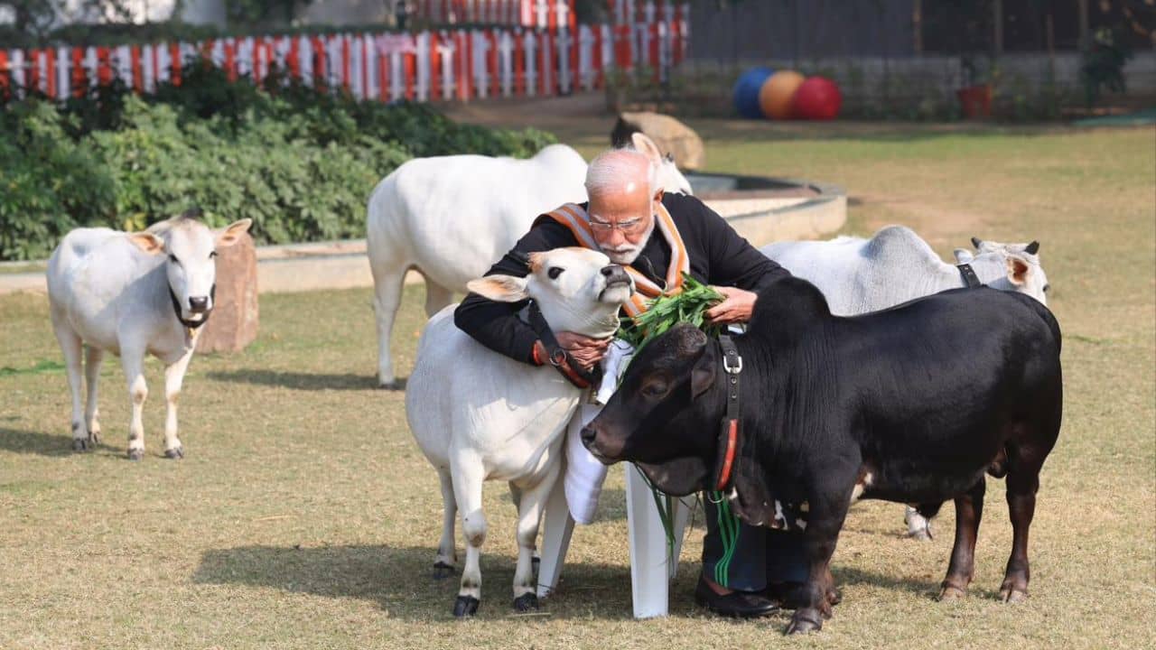 নয়া দিল্লিতে নিজ বাসভবনে বিলুপ্তপ্রায় এই বিশেষ প্রজাতির গরুদের সেবা করতে দেখা গেল প্রধানমন্ত্রী নরেন্দ্র মোদীকে।