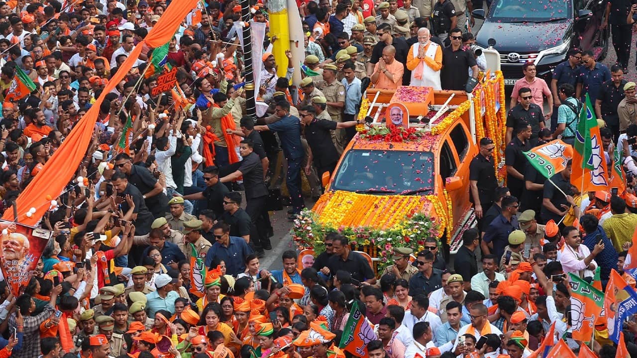 রোড-শোতে মোদীর সঙ্গী ছিলেন যোগী আদিত্যনাথ।