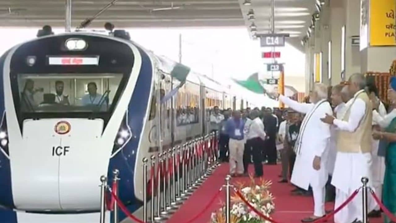 সামনেই গুজরাট বিধানসভা নির্বাচন। তাঁর আগেই রাজ্যবাসীর জন্য বড় উপহার দিলেন সেরাজ্যর ভূমিপুত্র প্রধানমন্ত্রী নরেন্দ্র মোদী। শুক্রবার গান্ধীনগর- মুম্বই বন্দে ভারত সেমি হাই স্পিড ট্রেনের শুভ সূচনা করেন প্রধানমন্ত্রী নরেন্দ্র মোদী। শুক্রবার সকাল সাড়ে ১০টা নাগাদ গান্ধীনগর ক্যাপিটাল রেলওয়ে স্টেশন থেকে এই বিশেষ ট্রেনের শুভ সূচনা করেন প্রধানমন্ত্রী নরেন্দ্র মোদী।
