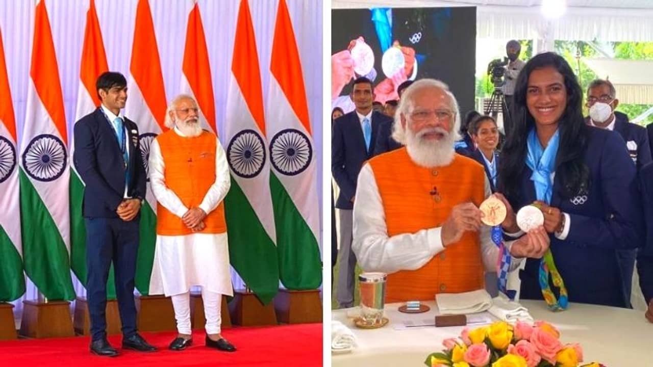 ভারতকে সোনা এনে দেওয়া জ্যাভলিন থ্রোয়ার নীরজ চোপড়া চুরমা খেতে ভালোবাসেন। এই খবর জানার পর তাঁকে চুরমা খাওয়ান মোদী। প্রধানমন্ত্রীর পাশে দাঁড়িয়ে পছন্দের খাবারের সামনে হাসিমুখে নীরজ। (সৌজন্যে-মন কী বাত আপডেটস টুইটার)