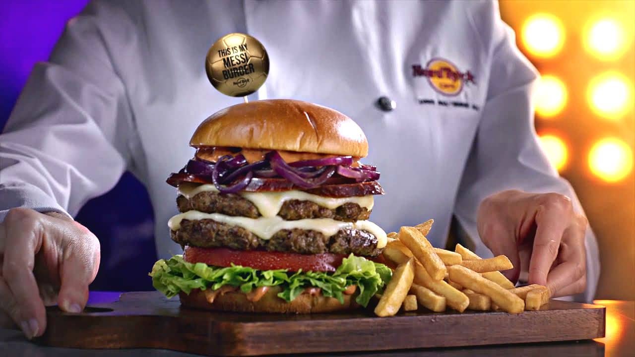 ৭ বারের ব্যালন ডি'অর জয়ী লিওনেল মেসির নামে বিশেষ বার্গার ('মেসি বার্গার') বের করেছে হার্ড রক ক্যাফে। চলতি বছরের মার্চ মাসে এই বার্গারের বাজারে আসার বিজ্ঞাপনেও দেখা গিয়েছিল মেসিকে। (ছবি-হার্ড রক ক্যাফে ইন্সটাগ্রাম)