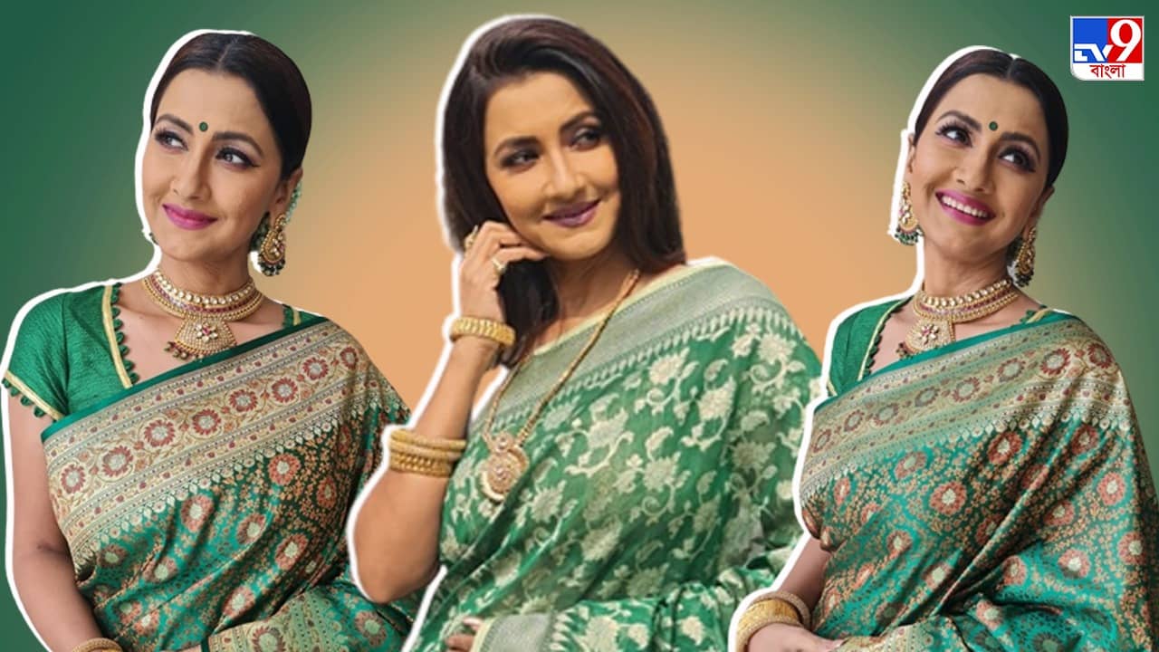 সবুজ একটি জামদানিতে বেশ কিছু ছবি সোশ্যাল মিডিয়াতে শেয়ার করেছেন রচনা। এই শাড়িটি বানিয়েছেন বাংলাদেশের নারায়ণগঞ্জের তাঁতিরা। ছবিতে রচনা লিখেছেন শাড়িটি ঢাকাই মসলিন। সিলভার আর গোল্ডেন সুতোয় ট্যাপস্ট্রি ওয়ার্ক রয়েছে শাড়ি জুড়ে। পুজোর দিনে এমন শাড়িতে যে কোনও কাউকেই কিন্তু ভাল লাগে।