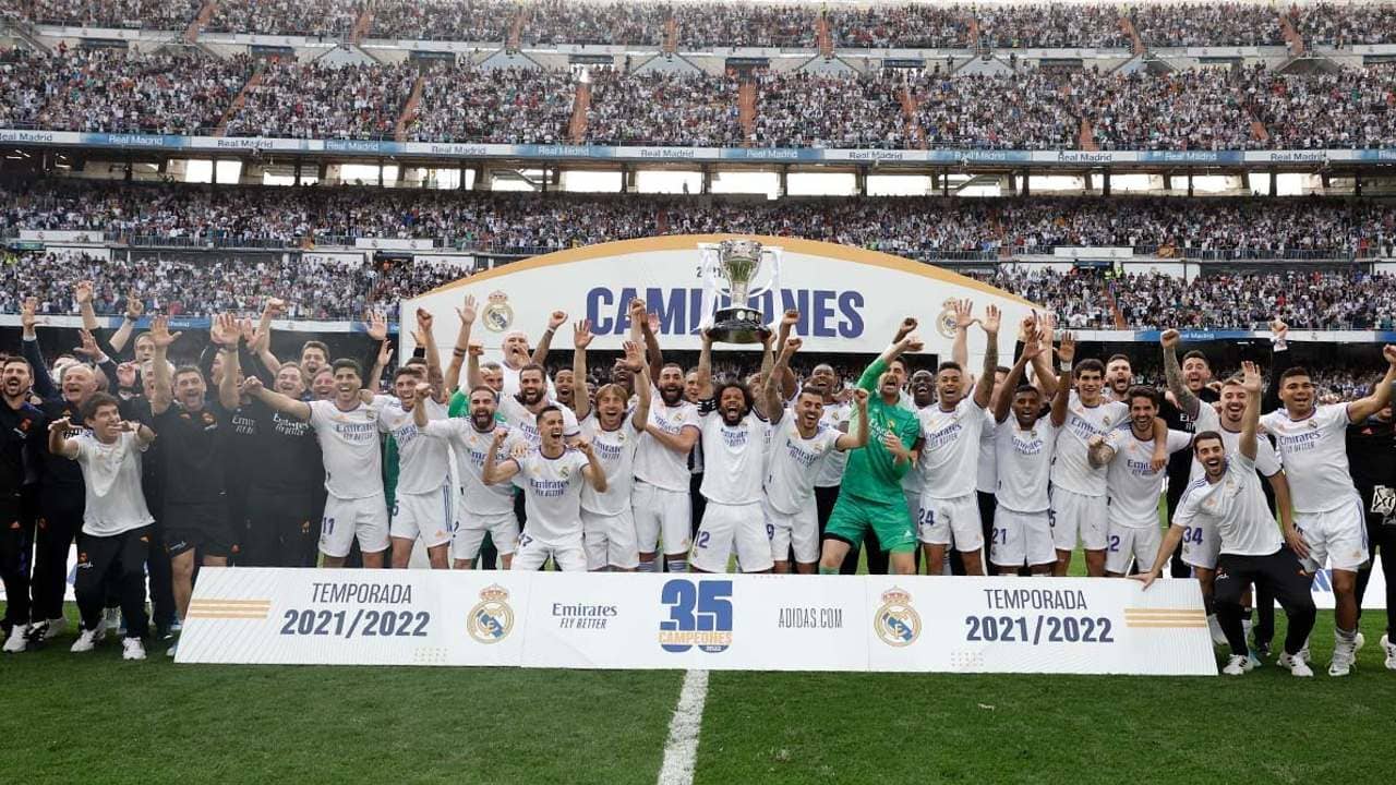 এই নিয়ে ৩৫ বার লা লিগা ট্রফি ঘরে তুলল রিয়াল মাদ্রিদ।