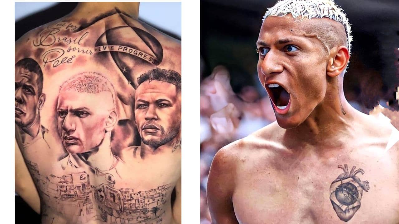 রিচার্লিসন সম্প্রতি পিঠে নতুন তিনটি ট্যাটু করিয়েছেন। বাঁ দিকে ব্রাজিল লেজেন্ড রোনাল্ডো নাজারিও, মাঝখানে নিজের ও ডানদিকে নেইমারের মুখ আঁকিয়েছেন তিনি। নেইমার জুনিয়রকে অনুপ্রেরণা মনে করেন রিচার্লিসন। সার্বিয়ার বিরুদ্ধে ম্যাচের পর আদর্শ রোনাল্ডো নাজারিওর সঙ্গে দেখা করার সুযোগ পান। তাঁকে পিজিয়ন ডান্সও শিখিয়ে দেন।(ছবি:ইনস্টাগ্রাম)