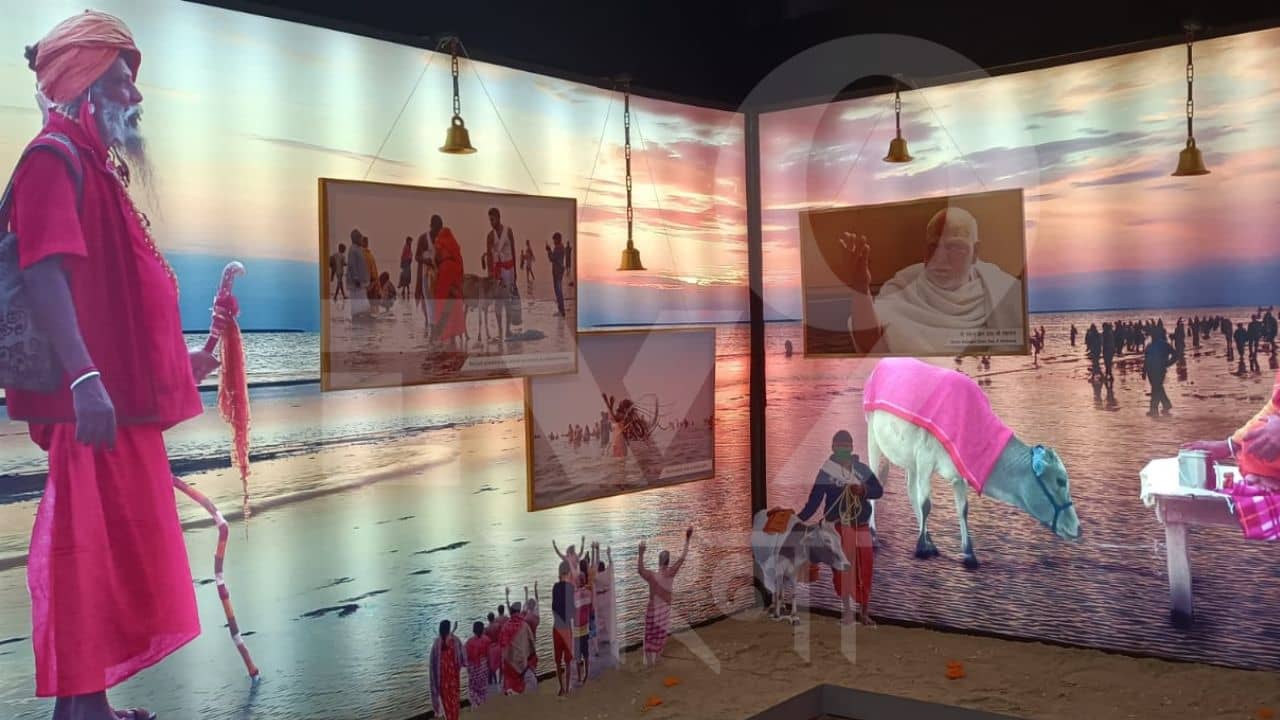শুধু আরতি আর মন্দির নয়, এবারের আরও একটি আকর্ষণ হল সাগর সংগ্রহশালা। সেখানে গঙ্গাসাগরের ইতিহাস সম্বলিত তথ্য রাখা হয়েছে। রয়েছে একাধিক কাটআউট। (নিজস্ব চিত্র)