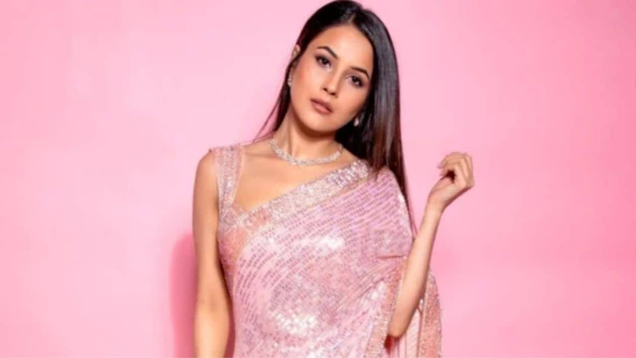 শেহনাজের গোটা শাড়ি জুড়ে রয়েছে চুমকির কাজ। হালকা রঙের শাড়ির সঙ্গে গলায় সরু নেকপিস পরেছেন নায়িকা।