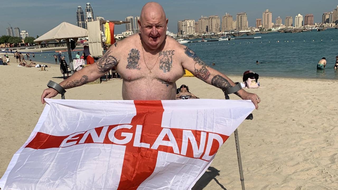হ্যারি কেনদের সমর্থন জোগাতে ট্যাঙ্গো পৌঁছে গিয়েছেন রক্ষণশীল দেশ কাতারে। যেখানে স্টেডিয়াম বা তার বাইরে ওভাবে শার্ট খুলে যত্রতত্র ঘোরার নিয়ম নেই। পল গ্রেগরি কাতারে যাচ্ছেন জেনে টুইটারে তাঁকে ব্যপক ট্রোল করা হয়। তারই জবাব দিলেন ওই ইংলিশ ফ্যান। (ছবি:টুইটার)