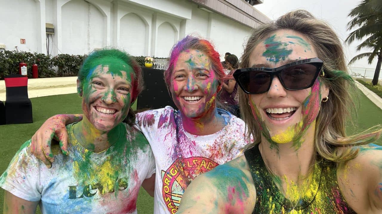 মেয়েদের প্রিমিয়র লিগের জন্য এইমুহূর্তে ভারতে রয়েছেন পাঁচটি ফ্র্যাঞ্চাইজিতে খেলা একঝাঁক বিদেশি ক্রিকেটার। ঠিক সেইসময়ই রঙের উৎসব। বিনা দ্বিধায় উৎসবে সামিল হলেন তাঁরা। (ছবি:টুইটার)