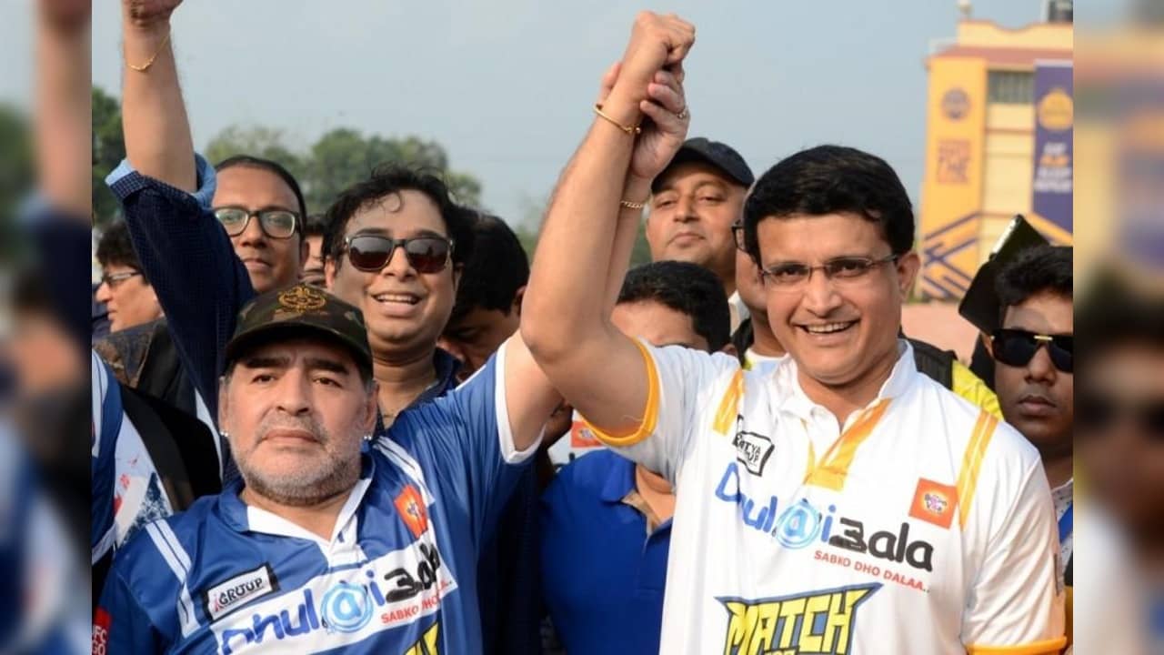 মারাদোনার কোনও গুণ সৌরভ ক্রিকেটে প্রয়োগ করেছিলেন কী? এই প্রশ্নের উত্তরে তিনি বলেন, "আমি ওর মতো হতে পারব না। তুমি তখনই একজনের মতো হতে পারবে, যখন তাঁর মতো দক্ষতা তোমার থাকবে। সকলের প্রতি সম্মান জানিয়েই বলছি ওর যে দক্ষতা ছিল, তেমনটা আর কারও ছিল না।" (ছবি-টুইটার)