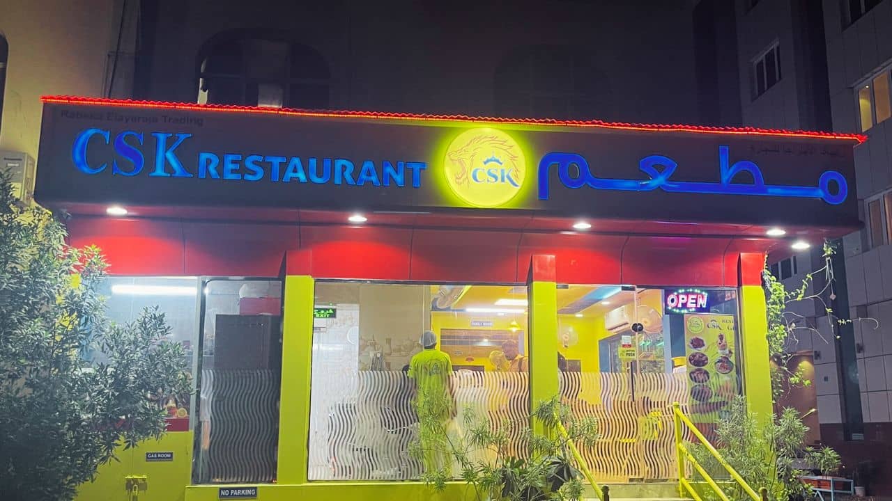 ওমানের রাজধানী মাস্কটে সিএসকে রেস্তোরাঁটির নাম প্রথমে রাখা হয়েছিল সিএসকে ক্যাফে। পরে তার নাম পরিবর্তন করে করা হয় সিএসকে রেস্তোরাঁ। (Pic Courtesy - CSK Restaurant Ghala Facebook)