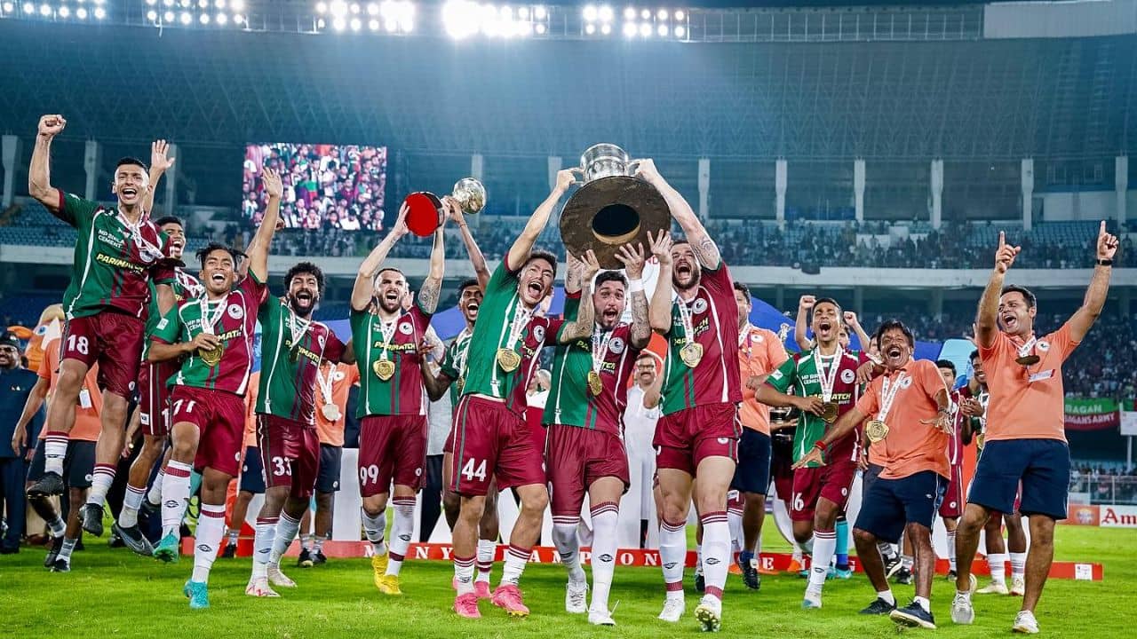 যে দলই জিতুক। ডার্বি জয়ের সেলিব্রেশন বাঁধনহারা হবে এমনটাই প্রত্যাশিত। তাও আবার ফাইনালের মঞ্চে! ছবি: মোহনবাগান সুপার জায়ান্ট