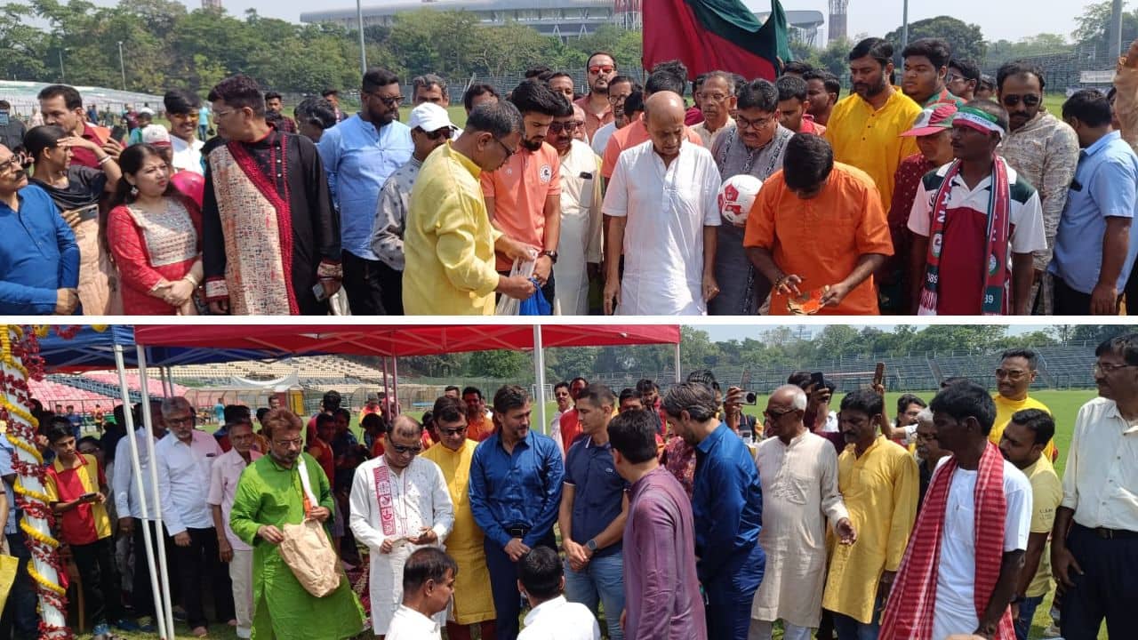মোহনবাগানের বারপুজোয় উপস্থিত ছিলেন দীপেন্দু বিশ্বাস, অমনদীপ সিংরা। আগামিকাল লিগ শিল্ড ফাইনাল। মোহনবাগানের সমর্থকদের একটাই প্রত্যাশা টিম এখন মুম্বই সিটি এফসিকে হারিয়ে লিগ শিল্ড জিতুক। ঘরের মাঠে ম্যাচ। যে কারণে সবুজ-মেরুন শিবির থেকে প্রত্যাশা বেশি। (নিজস্ব চিত্র)