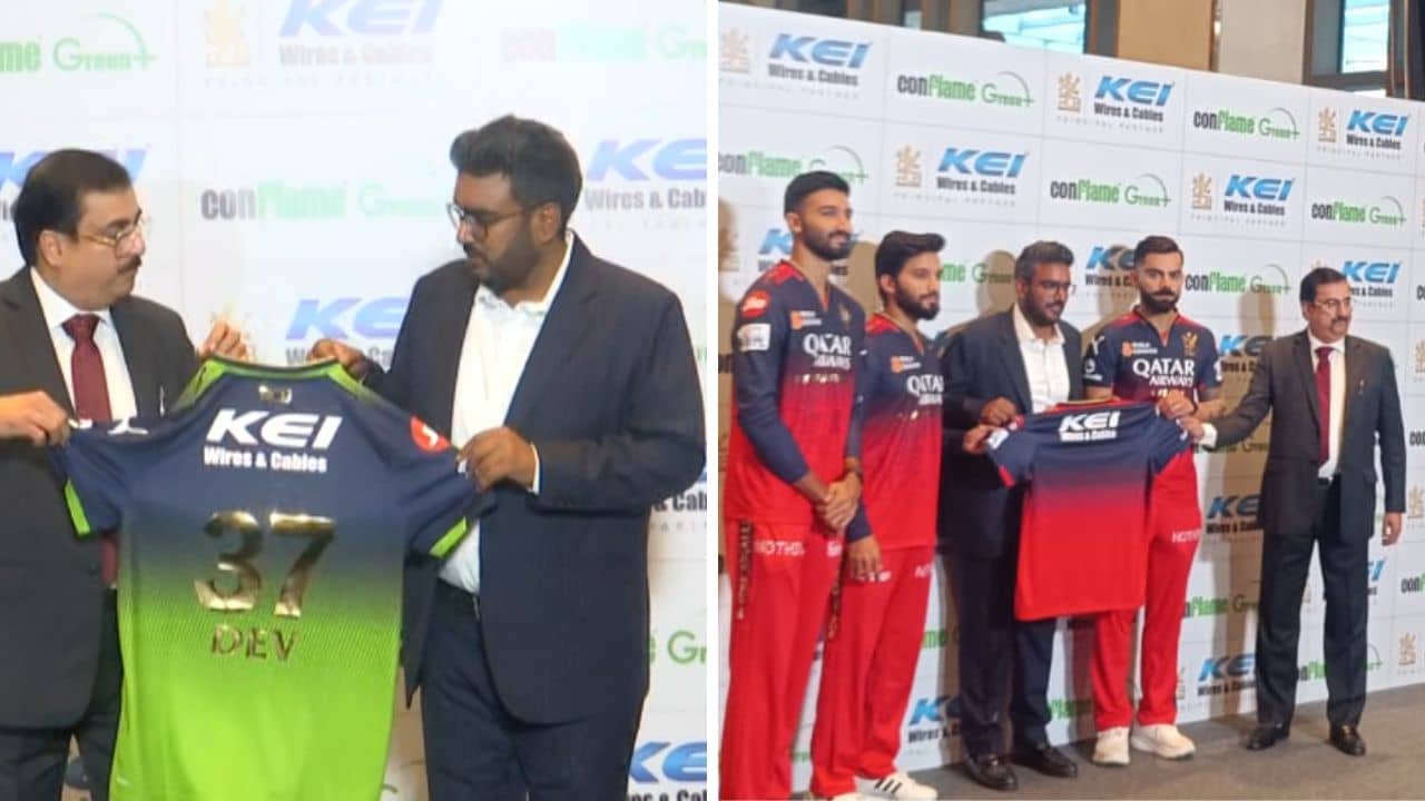 রয়্যাল চ্যালেঞ্জার্স বেঙ্গালুরুর জার্সি উন্মোচন অনুষ্ঠানে বিরাট কোহলি ছাড়াও উপস্থিত ছিলেন রজত পাতিদার ও দেবদত্ত পাড়িক্কল।
