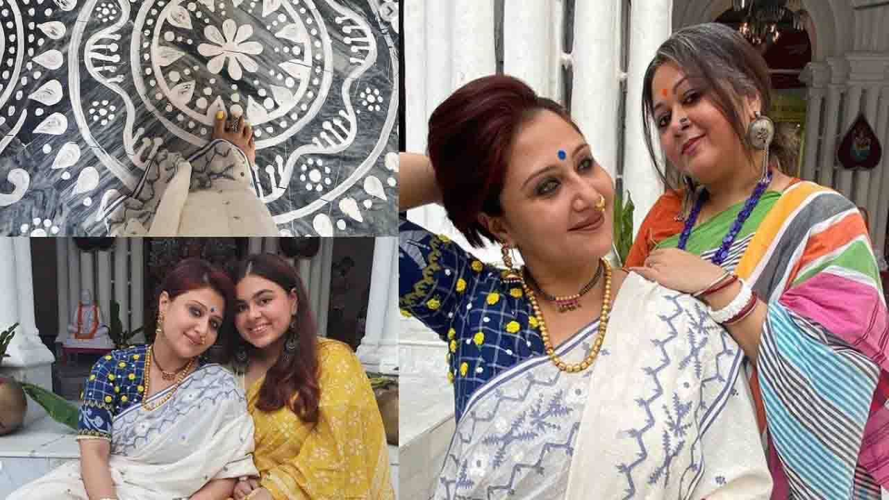 প্রিয়জনের আমন্ত্রণে বোন অজোপা ও মেয়ে অন্বেষার সঙ্গে গিয়েছিলেন বাড়ির পুজোয়।