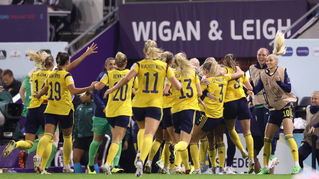 শেষ চারের লড়াইয়ে সুইডেনের প্রতিপক্ষ ইংল্যান্ড। ২৭ জুলাই ব্রামল লেনে হবে মেয়েদের ইউরো কাপের প্রথম সেমিফাইনাল। এর আগে মেয়েদের ইউরো কাপে ১ বার চ্যাম্পিয়ন হয়েছে সুইডেন। (ছবি-মেয়েদের ইউরো কাপ ২০২২ টুইটার)
