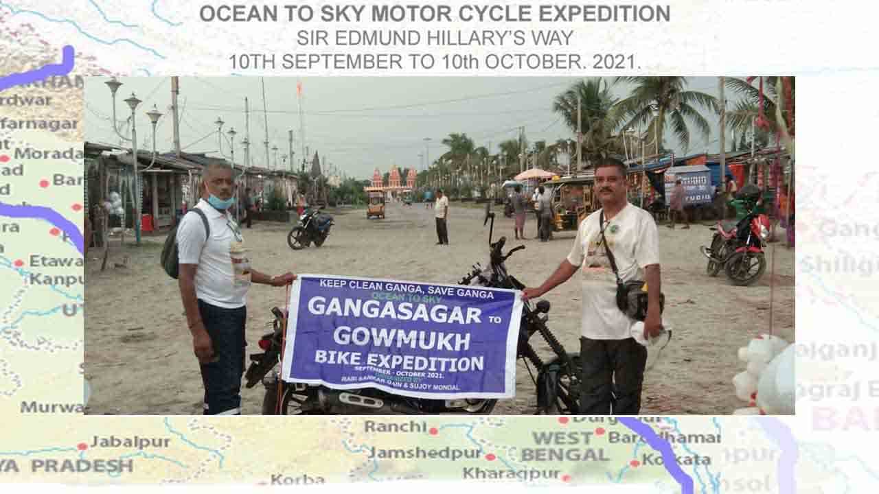 ১৯৭৭ এ স্যার এডমন্ড হিলারি ও তাঁর পুত্র পিটার হিলারি গঙ্গার মোহনা থেকে উৎসমুখ পর্যন্ত একটি জেটবোট অভিযান করেন। “ফ্রম ওসান টু স্কাই” (From Ocean to Sky ) শীর্ষক সেই অভিযানের স্মৃতিকে উসকে দিয়ে ৪৫ বছর পর ওই একই পথে বাইক নিয়ে অভিযানে চললেন দুই বাঙালি মাউন্টেন বাইকার। নৈহাটির সুজয় মণ্ডল আর বারাসাতের রবিশঙ্কর গায়েন আগামী ১০ সেপ্টেম্বর বাইকে স্টার্ট দিচ্ছেন। পাড়ি দেবেন প্রায় ৬০০০ কিলোমিটার পথ। আর এই সারাটা যাত্রাপথ জুড়ে তাঁরা ছড়াতে ছড়াতে যাবেন গঙ্গাকে নির্মল ও নিষ্কলুষ রাখার সচেতনতার বার্তা।