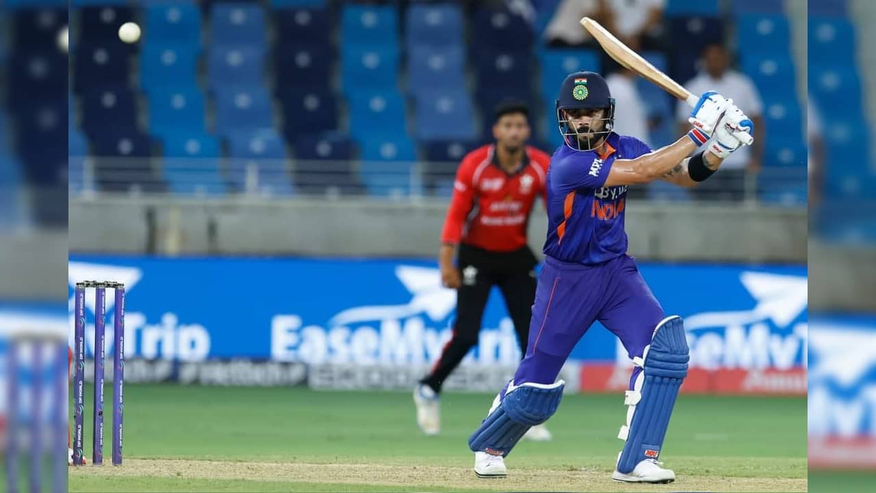 হংকংয়ের বিরুদ্ধে ৪৪ বলে অপরাজিত ৫৯ রান করে যান ভিকে। যে ইনিংস গড়ার পথে কোহলির ব্যাট থেকে এসেছে ১টি চার ও ৩টি ছয়। স্ট্রাইক রেট ১৩৪.০৯। (ছবি-পিটিআই)