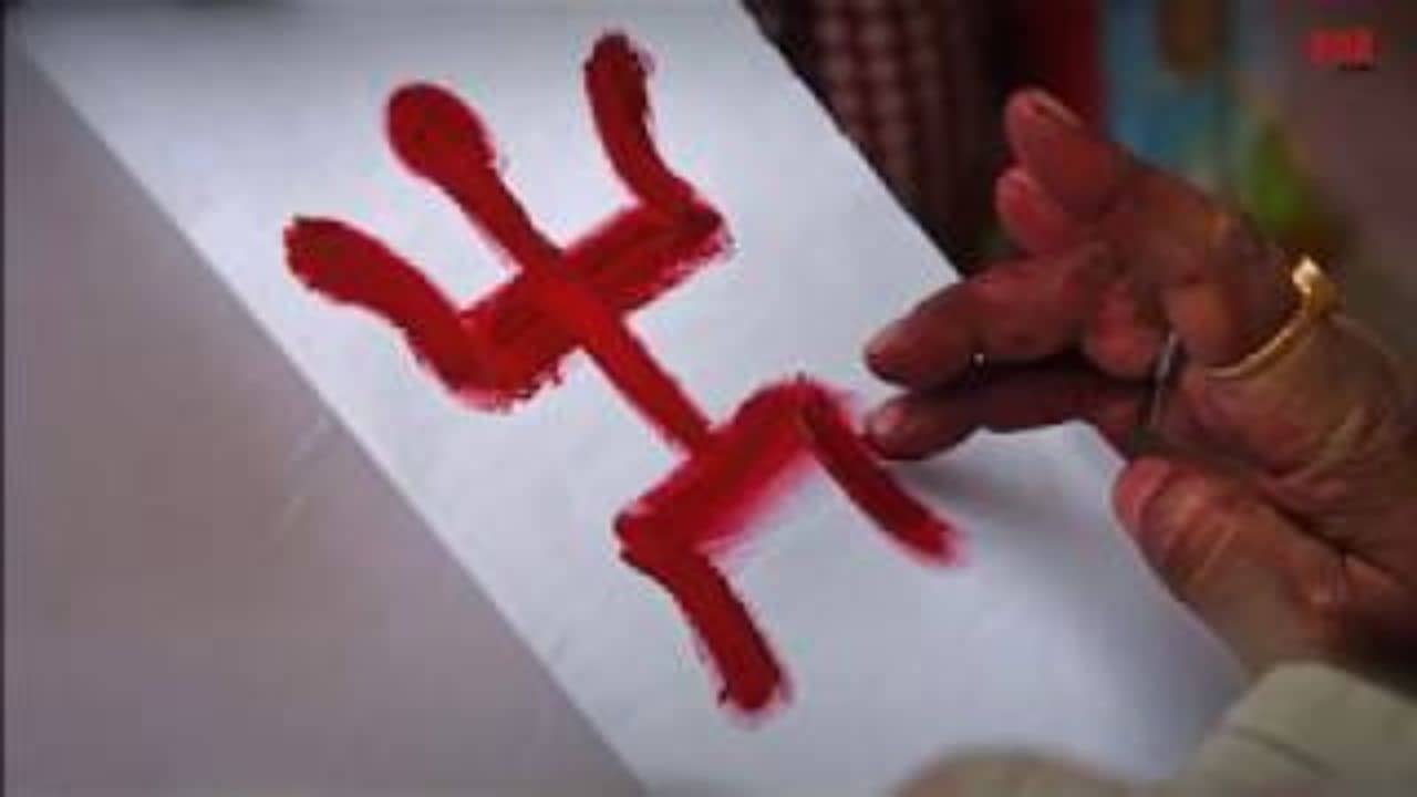 এই শুভ চিহ্ন নতুন নয়, প্রায় সিন্ধু সভ্যতার বিভিন্ন নিদর্শনে দেখা গিয়েছে। কোনও পুতুল বা মানুষের নয়, এটি দেবী লজ্জা গৌরীর মূর্তির আদলে নির্মিত। তিনি পুরাণ মতে মাতৃকাদেবী।