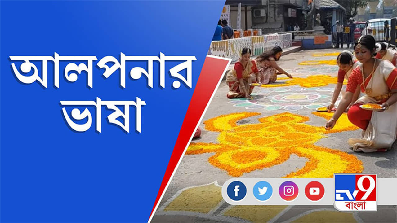 তিরিশ কেজি ফুলের পাপড়ি আর রঙ তুলি দিয়ে ৩০০ ফুটের আলপনা। সারা রাত জেগে ৬ জন তরুণ শিল্পী রাস্তায় ফুটিয়ে তুললেন। বাংলায় আলপনার আলাদা ভাষা আছে। সেই ভাষা চিরদিন থাকুক এই ভালবাসা নিয়ে এস বি পার্ক দুর্গা পুজো কমিটির উদ্যোগ ভাষা দিবসে।