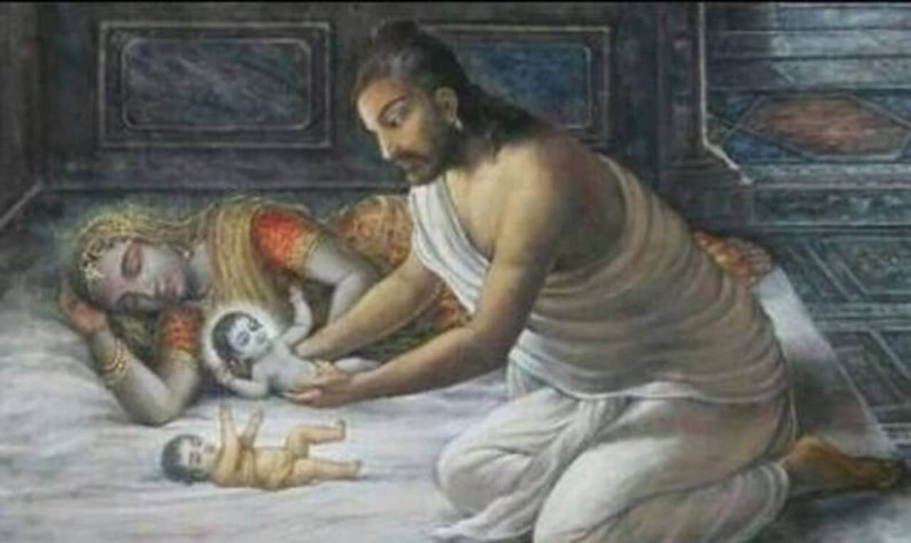 একে একে জন্ম নেয় ছয়টি সন্তান। সন্তান জন্ম নেওয়ার পর পরই কংস পূর্ব প্রতিশ্রতিমতো সদ্যোজাতকে পাথরের সাথে আছাড় দিয়ে নৃশংসভাবে হত্যা করতেন। সপ্তম গর্ভের সন্তান যখন বলদেব অধিষ্ঠিত হয়েছিল তখন ভগবানের নির্দেশে যোগমায়া দেবী দেবকীর গর্ভ হতে তাকে স্থানান্তরিত করে নন্দালয়ে রোহিনীর গর্ভে স্থাপন করেন এবং প্রচার করা হয় দেবকীর গর্ভপাত হয়েছে।অষ্টম গর্ভের সন্তান অর্থাৎ ভগবান শ্রীকৃষ্ণের জন্মগ্রহণের সময় কারাগারের বাইরে পূর্বের চেয়ে কংস এবারও আরও বেশী পাহারার ব্যবস্থা করেন। মাস ছিল ভাদ্র, তিথি ছিল অষ্টমী এবং রজনী ছিল ভীষণ দুর্যোগময়। প্রবল ঝড় বৃষ্টিতে প্রকৃতি ধারণ করে এক অন্যরকম মূর্তি, বিদ্যুৎ উচ্ছ্বলিত ঠিক এমন সময় ভগবান শ্রীকৃষ্ণ দেবকীর গর্ভে আবির্ভূত হন এবং দৈববানী শোনা যায় “বসুদেব, তুমি এখনই গোকুলে যেয়ে নন্দের স্ত্রী যশোদার পাশে তোমার ছেলেটিকে রেখে এসো এবং এই মুহূর্তে তার যে কন্যা শিশুটি জন্মগ্রহণ করেছে তাকে এনে দেবকীর কোলে শুয়ে দাও। আমার মায়ায় পৃথিবীর সমস্ত মানুষ এখন গভীর ঘুমে অচেতন, যার ফলে কেউ কিছুই জানতে পাবে না।”