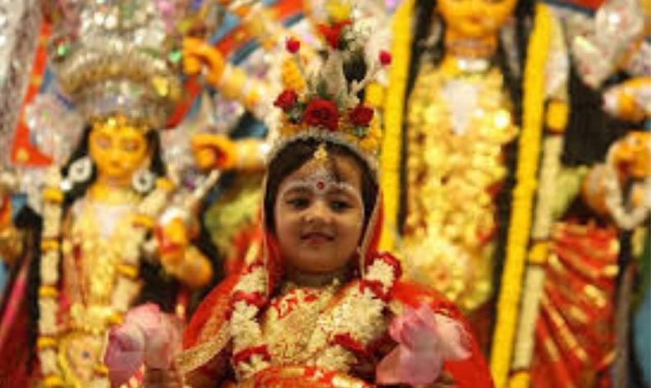 কুমারী পূজায় বিভিন্ন বয়সের কন্যা