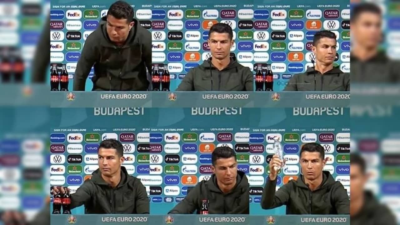 মাত্র কয়েক সেকেন্ডের একটা ঘটনা। আর তাতেই বিপুল পরিমাণ ক্ষতির মুখে এক সফট ড্রিঙ্কস প্রস্তুত কারক সংস্থা। হাঙ্গেরির বিরুদ্ধে ইউরো (Euro) অভিযান শুরুর আগে সাংবাদিক সম্মেলনে যোগ দিয়েছিলেন পর্তুগিজ তারকা ক্রিশ্চিয়ানো রোনাল্ডো (Cristiano Ronaldo)। সেই সাংবাদিক সম্মেলনে, তাঁর সামনে দুটি সফট ড্রিঙ্কসের বোতল রাখা ছিল। তা দেখা মাত্র সঙ্গে সঙ্গে বোতল দুটি সরিয়ে দেন সিআর সেভেন। পাশেই ছিল একটি জলের বোতল। সেটা তুলে দেখান, সফট ড্রিঙ্কস নয়, জল খান। আর এই ছোট্ট ঘটনায় কোটি কোটি টাকা ক্ষতির মুখে সেই ঠান্ডা পানীয় সংস্থা।