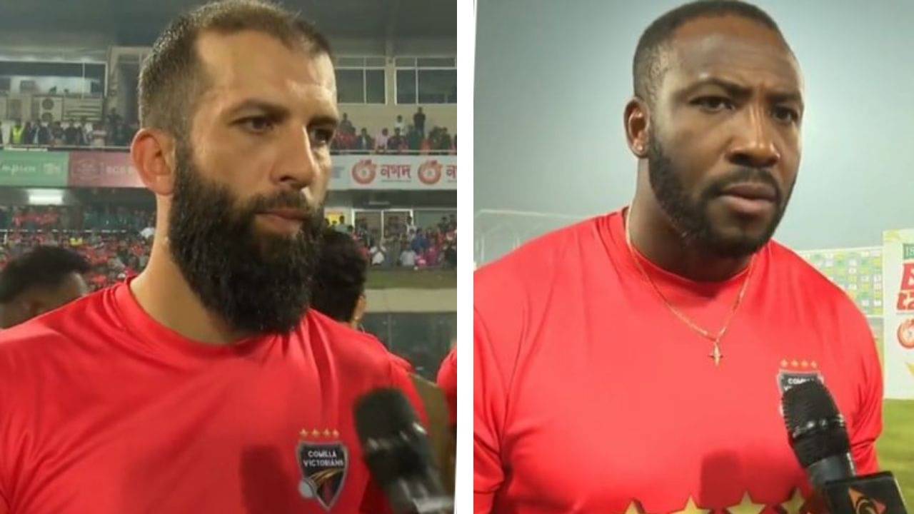 ঢাকা: চলতি বছরের বাংলাদেশ প্রিমিয়ার লিগের (Bangladesh Premier League) চ্যাম্পিয়ন হয়েছে কুমিল্লা ভিক্টোরিয়ান্স। ৪ উইকেটে সিলেট স্ট্রাইকার্সকে হারিয়ে চ্যাম্পিয়ন হয়েছে কুমিল্লা। ৪ ওভার বল করে ৩০ রান দিয়ে ২ উইকেট নিয়ে ম্যাচের সেরার পুরস্কার পেয়েছেন কুমিল্লার তনবীর ইসলাম। মোসাদ্দেক হোসেন, সুনীল নারিনের ব্যাটিংয়ে ভর করে কুমিল্লা ম্যাচ বের করে নিয়ে যায়। এ তো গেল ম্যাচের কথা। এরপরই ঘটে মজার কাণ্ড। বিপিএল (BPL) চ্যাম্পিয়ন কুমিল্লার ক্রিকেটারদের সাক্ষাৎকার নেওয়া শুরু করেন বাংলাদেশের এক রিপোর্টার। যার ভাঙা ইংরেজি (BPL Reporter English) শুনে কোনও উত্তরই বেরোয়নি আন্দ্রে রাসেল-মইন আলি-সুনিল নারিনদের মুখে। সোশ্যাল মিডিয়ায় সেই ভিডিয়ো ভাইরাল হয়ে গিয়েছে। বিস্তারিত জেনে নিন TV9Bangla-র এই প্রতিবেদনে।
