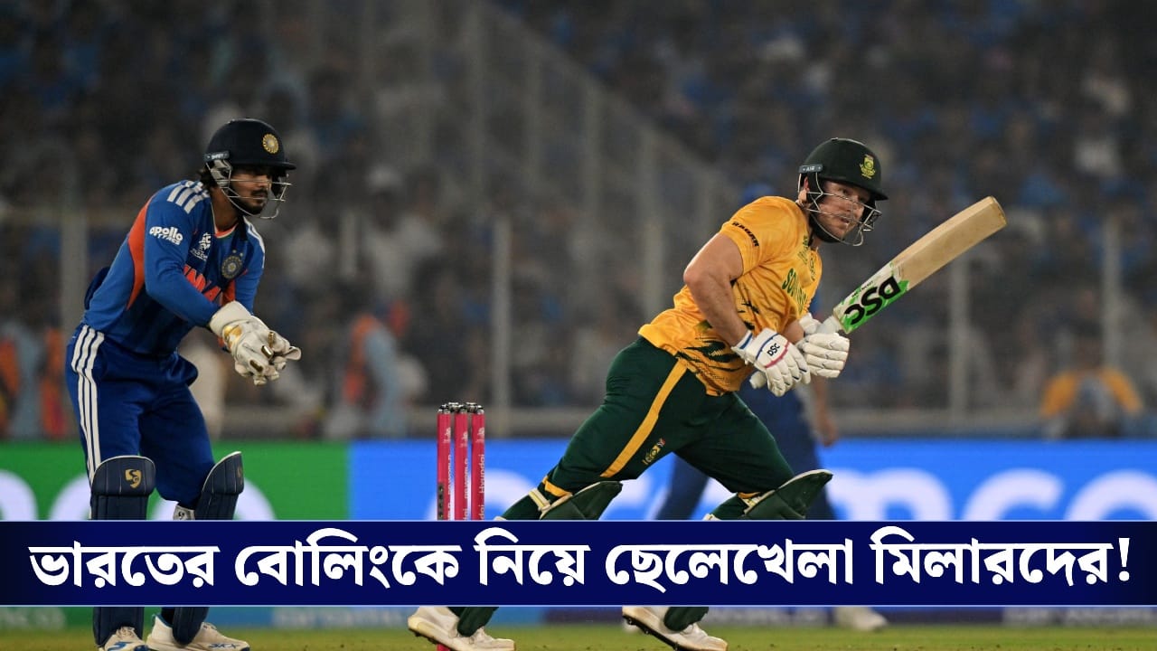 আহমেদাবাদের কালো পিচে টসে জিতে ব্যাটিংয়ের সিদ্ধান্ত নিয়েছিলেন দক্ষিণ আফ্রিকা অধিনায়ক আইডেন মারক্র্যাম। প্রথম ৪ ওভারেই ৩ উইকেট হারিয়ে চাপে পড়ে যায় দক্ষিণ আফ্রিকা। ব্যর্থ অধিনায়ক নিজে (৪), কুইন্টন ডি’কক (৬), রায়ান রিকলটন (৭)। সেখান থেকেই প্রোটিয়াদের পরিত্রাতা হয়ে উঠলেন ব্রেভিস ও মিলার। দু’জনের জুটিতে উঠল ৯৭ রান। ব্রেভিস খেললেন ২৯ বলে ৪৫ রানের ইনিংস। মিলারের ঝুলিতে ৩৫ বলে ৬৩। তবে শেষে যেন সব আলো শুষে নিলেন ট্রিস্টান স্টাবস। ২৪ বলে ৪৪ রানের দুর্দান্ত ইনিংস খেললেন তিনি। হার্দিকের শেষ ওভারে ২০ রান নিলেন তিনি। এর ফলেই দক্ষিণ আফ্রিকা ২০ ওভারে তুলল ১৮৭। মাত্র ১৫ রান দিয়ে ৩ উইকেট নিলেন বুমরা। ৩ উইকেট নিয়ে টি-টোয়েন্টি বিশ্বকাপের সর্বোচ্চ উইকেট শিকারী হয়ে গেলেন বুমরা। দুই উইকেট পেলেন অর্শদীপ। আজ দলে জায়গা পান নি দলের সহ-অধিনায়ক অক্ষর পটেল। এই নিয়ে বিতর্কের অন্ত নেই সোশ্যাল মিডিয়ায়। ৪ ওভার বল করে ৪৫ রান দিলেন হার্দিক। প্রায় একই অবস্থা বরুণ চক্রবর্তীরও। তাঁর বোলিং ফিগার ৪-০-৪৭-১। অক্ষরের বদলে দলে আসা ওয়াশিংটন বিশেষ চমকপ্রদ নয়। ২ ওভার বল করে তিনি দিয়েছেন ১৭ রান।