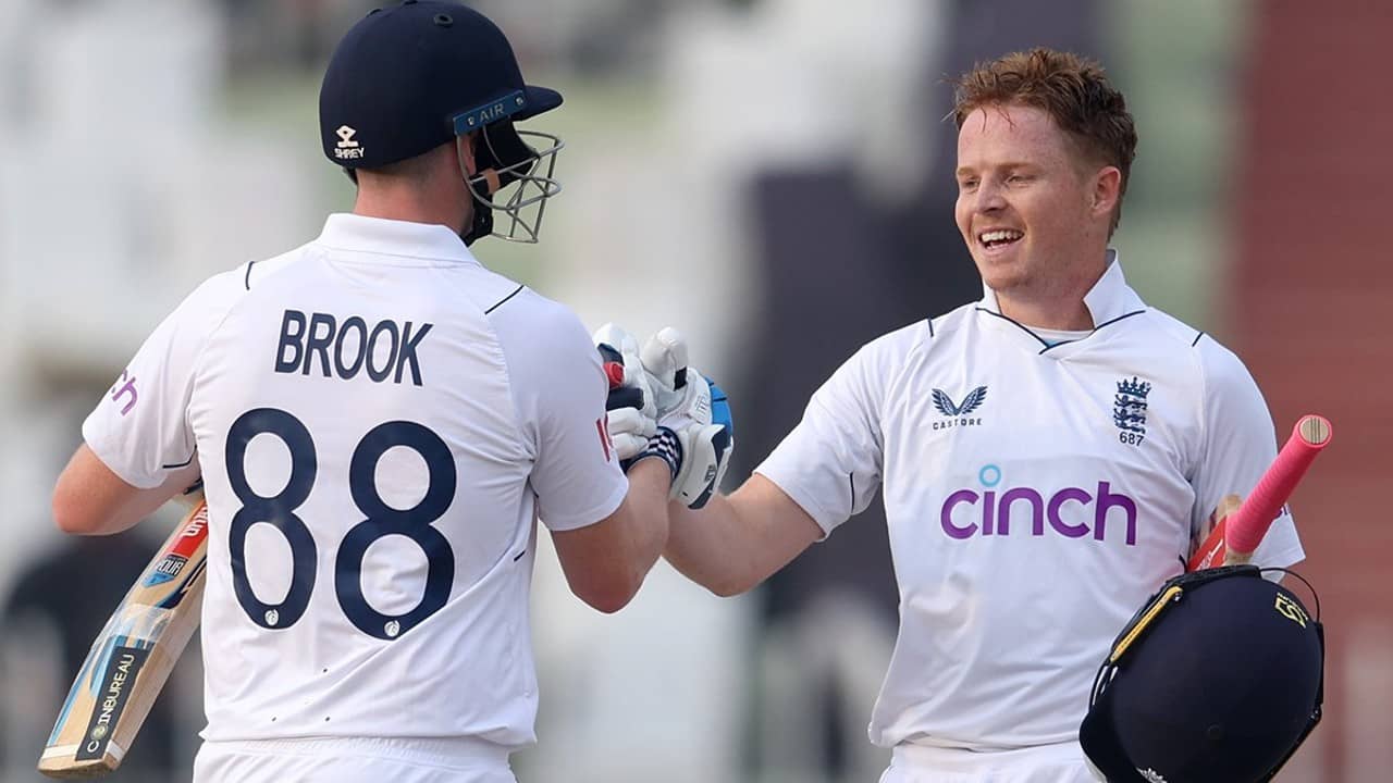 রাওয়ালপিন্ডি টেস্টে একঝাঁক নজির। তার মধ্যে আলাদা করে নজর কেড়েছেন হ্যারি ব্রুক। ৮০ বলে শতরানের রেকর্ড করে নজির গড়েছেন ব্রুক। সেই সঙ্গে এক ওভারে ৬ বলে ছ’টা চারও মেরেছেন। ব্রুক এইদিন ইংল্যান্ড ইনিংসের চতুর্থ সেঞ্চুরি করেন। রাওয়ালপিন্ডিতে পিচের সম্পূর্ণ সদ্বব্যবহার করেন ব্রুক। পুরো ম্যাচে ১৪ টি বাউন্ডারি ও ২ টি ছক্কা হাঁকিয়ে সেঞ্চুরির মাইলফলকে ব্রুক। ইংল্যান্ডের ওপেনার জ্যাক ক্রলি ও বেন ডাকেট সেঞ্চুরি করেছেন। এ ছাড়াও সেঞ্চুরি করেছেন ওলি পোপ।