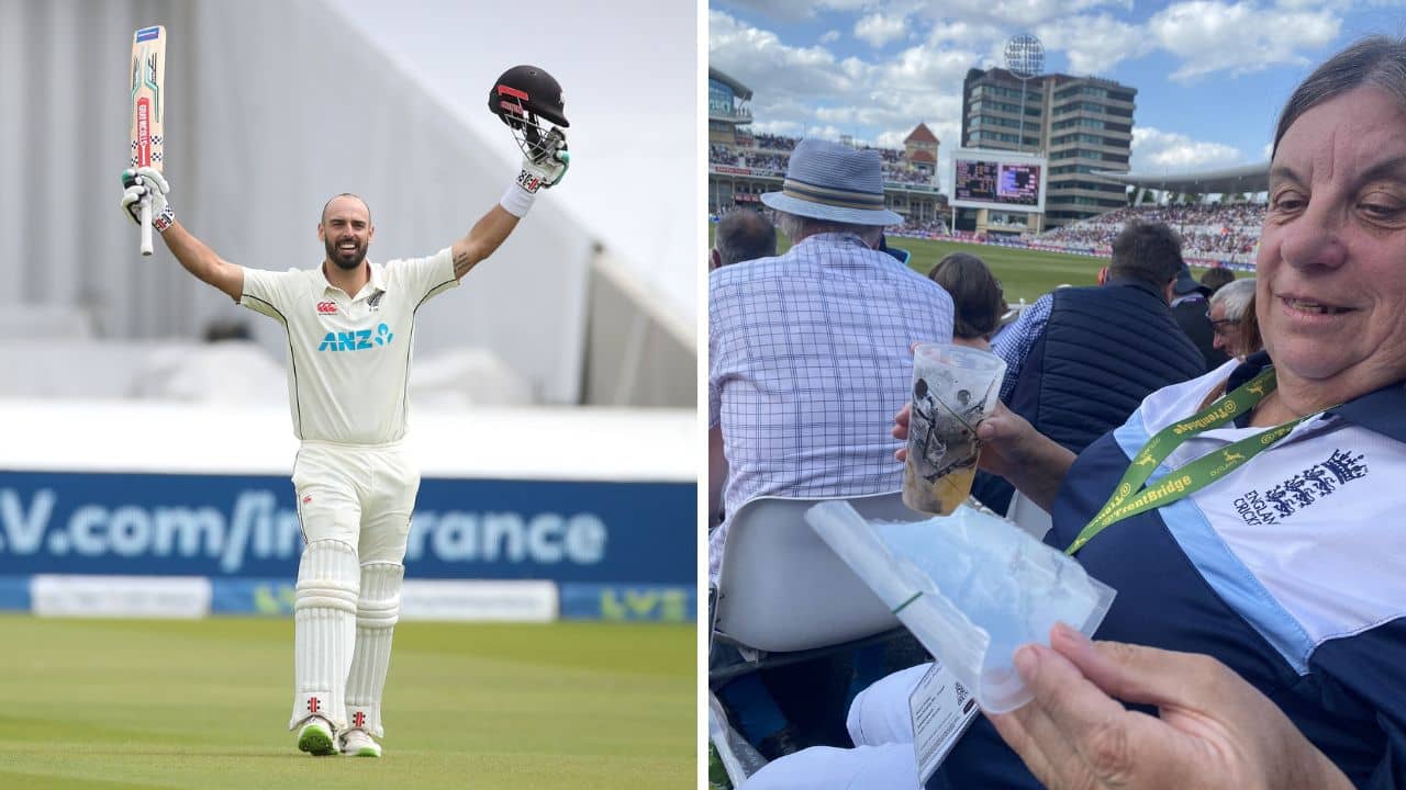 টসে জিতে শুরুতে নিউজিল্যান্ডকে ব্যাটিং করতে পাঠান ইংল্যান্ডের অধিনায়ক বেন স্টোকস। নিউজিল্যান্ডের প্রথম ইনিংসের ৫৬ ওভারে জ্যাক লিচের বলে একখানা লম্বা ছক্কা হাঁকান ড্যারেল মিচেল। এই অবধি ঠিক ছিল। কিন্তু মিচেলের পাঠানো বল গিয়ে পড়ে গ্যালারিতে থাকা এক দর্শকের বিয়ারের গ্লাসে। ওই মহিলা দর্শকের পাশে থাকা বাকি দর্শকরা হাসতে থাকেন। সেই ভিডিও রীতিমতো ভাইরাল হয়েছে সোশ্যাল মিডিয়ায়।