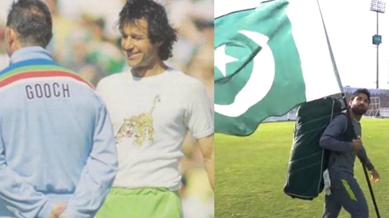 প্রত্যেকটা প্র্যাকটিস সেশনে কিট ব্যাগের সঙ্গে দেশের পতাকা বহন করছেন বাবর-রিজওয়ানরা। যা আগে কখনও দেখা যায়নি। এমন দৃশ্যই মনে করিয়ে দিচ্ছে ২৯ বছর আগের এক ঘটনার কথা। ইমরান খানের (Imran Khan) নেতৃত্বে সে বার ৫০ ওভারের ক্রিকেট বিশ্বকাপে চ্যাম্পিয়ন হয় পাকিস্তান। প্রথম বার। ১৯৯২ বিশ্বকাপ ফাইনালে দেশের জার্সি পরে টস করতে আসেননি ইমরান। এসেছিলেন একটা সাদা গেঞ্জি পরে। যার মাঝে একটা বাঘের ছবি। ফাইনালে তাঁর দলের প্রত্যেক ক্রিকেটার যাতে বাঘের মতো লড়াই চালায় সেই জন্যই অমন গেঞ্জি পরে টস করতে এসেছিলেন ইমরান। সেই স্বপ্ন সফলও হয়। গুচের ইংল্যান্ডকে ২২ রানে হারিয়ে চ্যাম্পিয়ন হয় পাকিস্তান।
