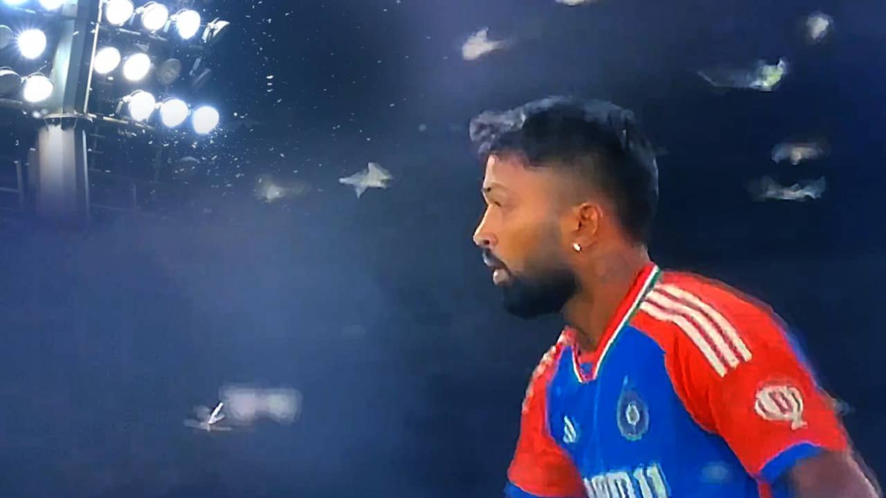 অর্শদীপ সিংয়ের ওভার সবে শেষ হয়েছে। সাউন্ড বক্সে অ্যানাউন্স করা হল, উল্টো প্রান্ত থেকে বোলিংয়ে আসছেন হার্দিক পান্ডিয়া। এরই মাঝে প্লেয়ারদের সঙ্গে কথা বলেন অন ফিল্ড আম্পায়ার। সকলেই সিদ্ধান্ত নেন এই পরিস্থিতিতে খেলা চালিয়ে যাওয়া উচিত হবে না। দু-দলই মাঠ ছাড়ে। মাঠকর্মীরা ভ্যাকুম ব্যবহার করে পরিস্থিতি নিয়ন্ত্রণে আনার চেষ্টা করতে থাকেন। পিচেও অনেক পোকা পড়ে থাকতে দেখা যায়।