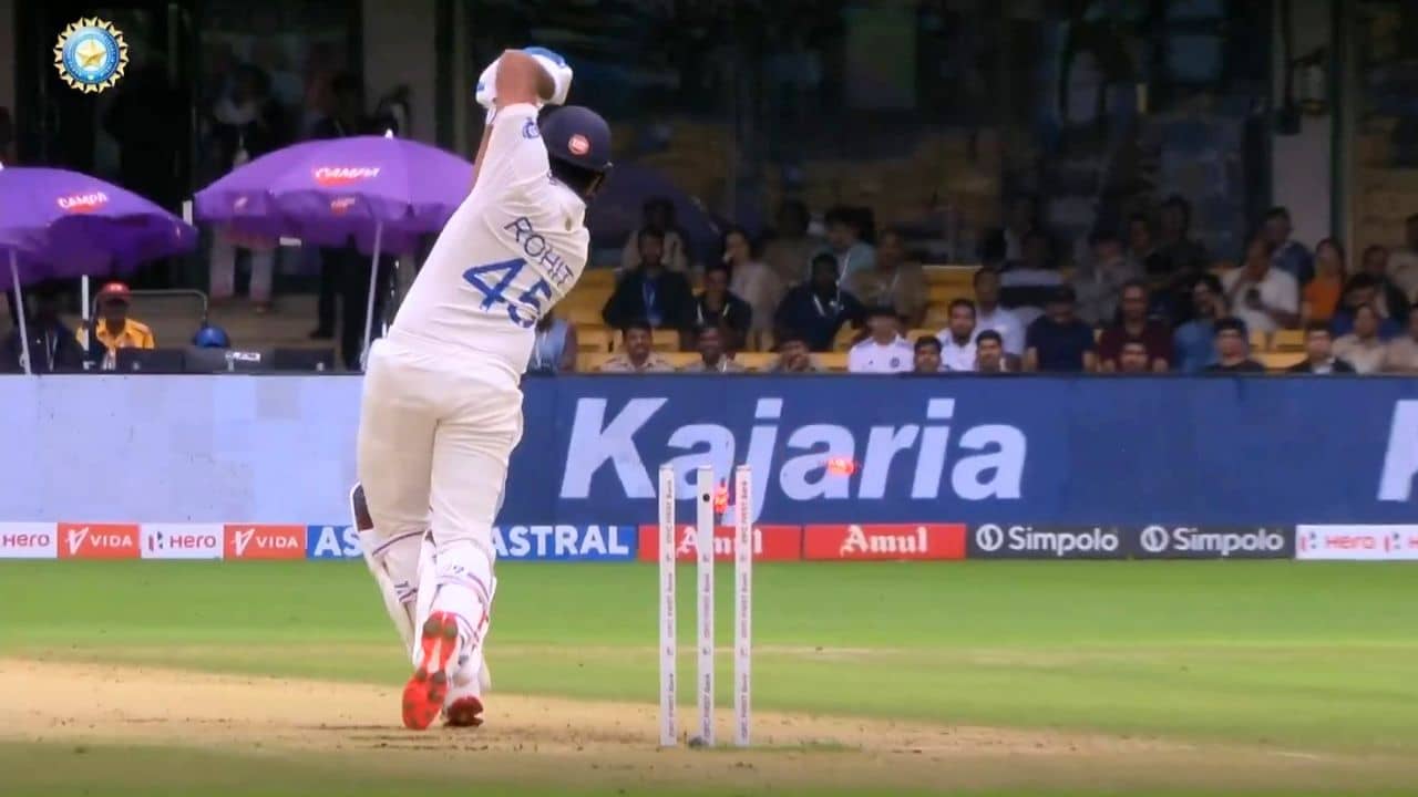 বৃষ্টির কারণে ভারত-নিউজিল্যান্ড প্রথম টেস্টের প্রথম দিন ভেস্তে গিয়েছিল। এরপর দ্বিতীয় দিন সময় মতো খেলা শুরু হয়। বেঙ্গালুরু টেস্টে ভারতের প্রথম ইনিংসের সপ্তম ওভারের তৃতীয় বলে রোহিতকে ক্লিন বোল্ড করেন সাউদি। দলগত ৯ রানে প্রথম উইকেট হারায় টিম ইন্ডিয়া। একথা অস্বীকার করার জায়গা নেই যে, ম্যাচ শুরুর প্রথম ঘণ্টার মধ্য়েই রোহিতের বড় উইকেট হারিয়ে চাপে পড়ে গেল টিম ইন্ডিয়া।