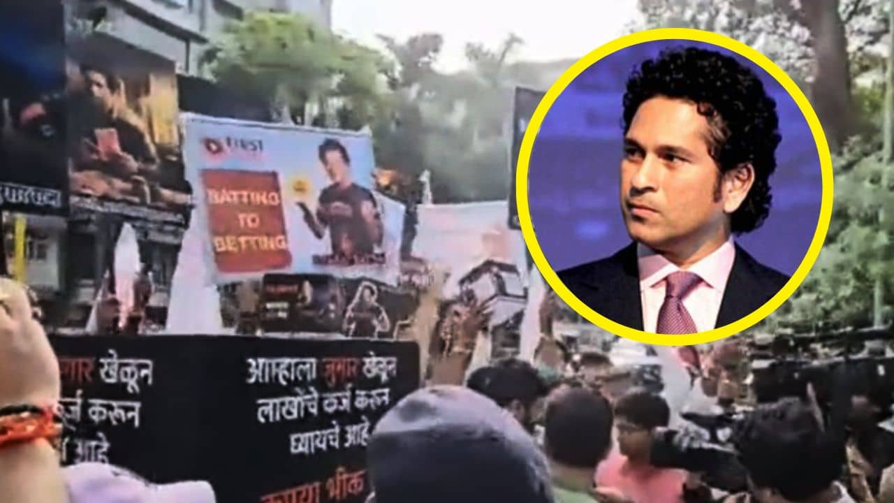 মুম্বই : এক ঝলক দেখলে কোনও পলিটিশিয়ানের বাড়ি বলে ভ্রম হতে পারে। পোস্টার, ব্যানার টাঙিয়ে প্রতিবাদ, স্লোগানে মুখর চারিদিক। দেশের ব্যাটিং কিংবদন্তি, মাস্টার ব্লাস্টার সচিন তেন্ডুলকরের (Sachin Tendulkar) বাড়ির সামনে শুরু হয়েছে এই প্রতিবাদ। প্ল্যাকার্ডে ইংরেজিতে লেখা ‘ব্যাটিং থেকে বেটিং’ এবং মরাঠি ভাষায় লেখা বড় ব্যানার। নেতৃত্বে রয়েছেন প্রহার জনশক্তি পার্টির নেতা ওমপ্রকাশ বাবারাও ওরফে বাচ্চু কাডু। কেন এমন প্রতিবাদ? যে মানুষের ক্রিকেট কেরিয়ার জলের মতো স্বচ্ছ। ব্যক্তিগত জীবনেও যিনি বিতর্ক থেকে শত ক্রোশ দূরে থাকেন সেই সচিন তেন্ডুলকরের বাড়ির সামনে এমন অবস্থান প্রতিবাদের কারণ কী? বিস্তারিত জেনে নিন TV9 Bangla Sports এর এই প্রতিবেদনে।