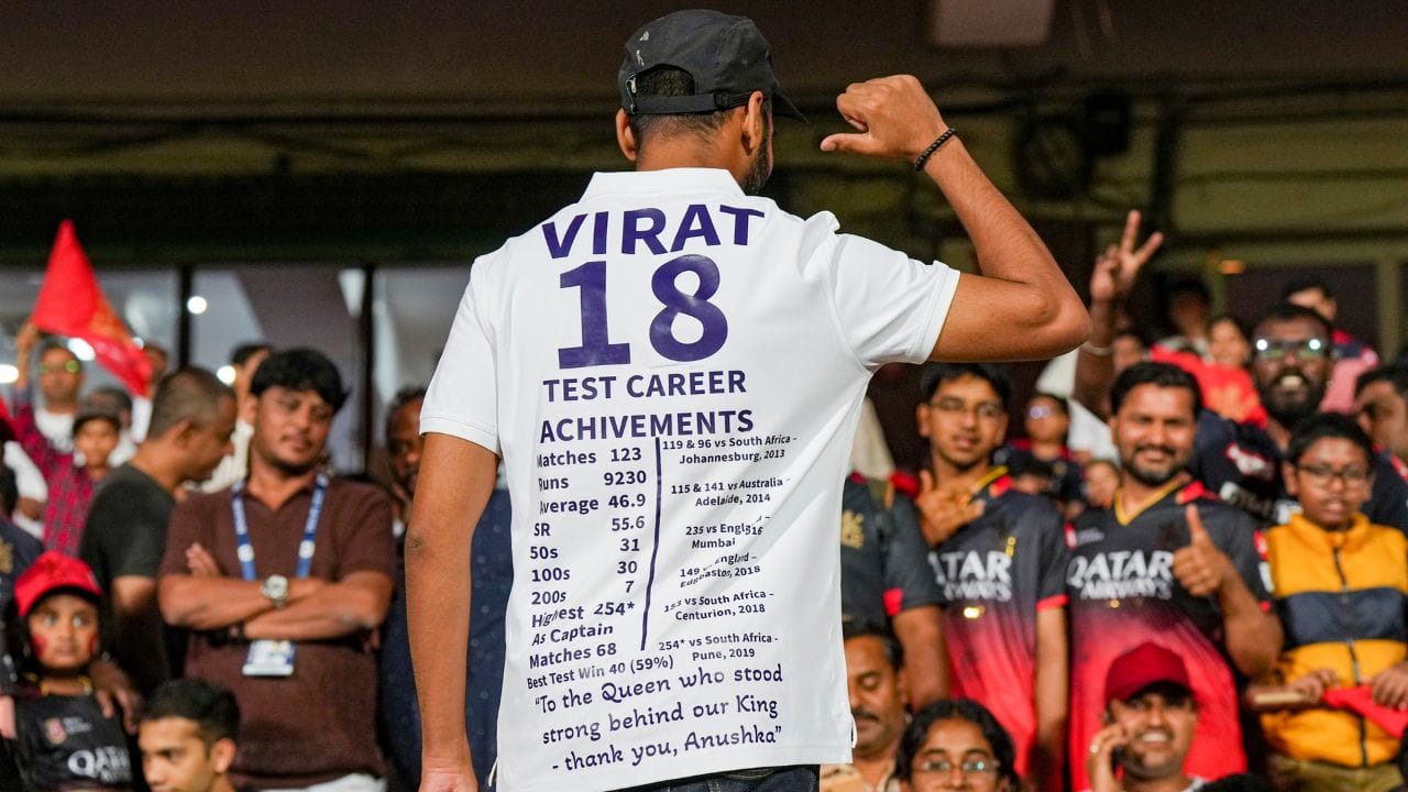 কিংবদন্তি খেলোয়াড়দের অবসরকে স্মরণীয় করে রাখার জন্য, বিদায়ী ম্য়াচের আয়োজন করা হয়। কিন্তু অনেক কিংবদন্তির মতোই বিরাট কোহলি-রোহিত শর্মাদের ক্ষেত্রে সেটা হয়নি। বিরাটের অবসর অবাক করার মতোই। কোহলির ফ্যান ফলোয়িং যে কত বেশি, বলার অপেক্ষা রাখে না। সেই ফ্যানেরাই বিরাটের টেস্ট অবসরকে স্মরণীয় করে তুলতে চেয়েছিলেন। আইপিএল ম্যাচেই আরসিবির রঙিন জার্সির বদলে বিরাটের নাম লেখা টেস্ট জার্সিতে গ্যালারিতে উপস্থিত সমর্থকরা। ম্যাচ না হলেও একটা অদ্ভুত ঘটনা দেখা গেল।