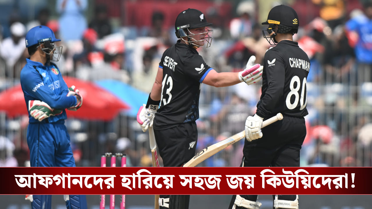 রবিবাসরীয় দুপুরে চিপকে নিজেদের বিশ্বকাপে প্রথম ম্যাচ খেলতে নেমেছিলেন রশিদ খানেরা। তৃতীয় উইকেটে গুলাবদীন ও সাদিকুল্লার পার্টনারশিপ আফগানদের সাহায্য করেছে বড় রান স্কোরবোর্ডে তুলতে। আজমিতুল্লাহ ওমরজাই ভাল শুরু করেছিলেন , কিন্তু একটি দুর্দান্ত রান আউট শেষ করে দেয় তাঁর ৭ বলে ১৪ রানের ইনিংস। দুই উইকেট পেয়েছেন লকি ফার্গুসন। একটি করে উইকেট রবীন্দ্র, ডাফি ও ম্যাট হেনরির। ব্যাট করতে নেমে শুরুতেই উইকেট হারিয়েছে কিউয়িরা। প্রথম বলেই আউট রাচিন রবীন্দ্র। চলেননি ফিন অ্যালেনও। এই অবস্থা থেকেই দলের হাল ধরেছিলেন টিম সাইফার্ট। ৪২ বলে তাঁর করা ৬৫ রানের সুবাদেই জয় পেল নিউজিল্যান্ড। গ্লেন ফিলিপ্স করেছেন ২৫ বলে ৪২ রান।