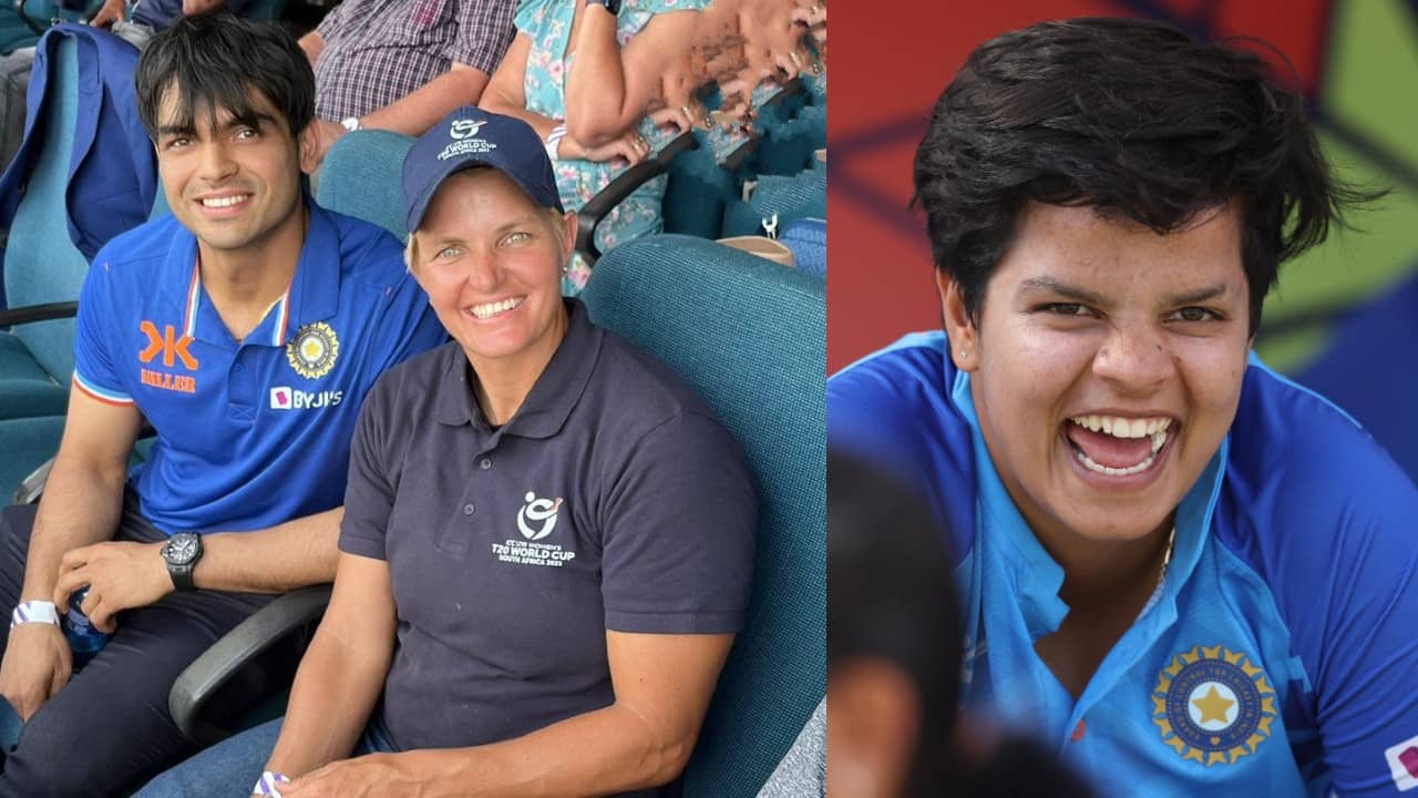 শেফালিদের কী মন্ত্র দিয়েছিলেন নীরজ? ফাইনালের মঞ্চে সবচেয়ে বড় বিষয় হল চাপ সামলে নিজের সেরাটা উজাড় করে দেওয়ার মানসিকতা। শেফালিদের মতো কম বয়স থেকে চাপ সামলানো শিখতে পারলে ভবিষ্যতে কাজটা সহজ হয়ে যায়। নীরজ বললেন, “এত কম বয়সে তোমরা যদি চাপ নাও তাহলে এটা ভবিষ্যতেও তোমাদের মাথায় থেকে যাবে। তাই খেলাটাকে উপভোগ করছ এটা ভেবে স্বাভাবিক খেলাটা খেলো। নিজের একশো শতাংশ উজাড় করে দাও। এবং অবশ্যই কোচের পরামর্শ মেনে চলো।” নিজের উদাহরণ টেনে নীরজ বলেছেন, “আমি যখন কেরিয়ার শুরু করেছিলাম তখন গ্রাম ছেড়ে , নিজের সাদাসিধে পরিবার ছেড়ে আসতে হয়েছিল। আমি জানি, তোমাদের কাছেও পরিবার ও দেশকে গর্বিত করার সুযোগ রয়েছে। যতটা পরিশ্রম করেছ নিজেদের উজাড় করে দাও। যেকোনও পরিস্থিতির জন্য নিজেদের প্রস্তুত রাখো। দেশের জন্য খেলছ, এটাই তোমাদের সবচেয়ে বড় অনুপ্রেরণা।” চেয়ারে বসে অলিম্পিক চ্যাম্পিয়নের কথাগুলি গোগ্রাসে গিলেছিলেন শেফালিরা। তার ফলও মিলেছে হাতেনাতে।