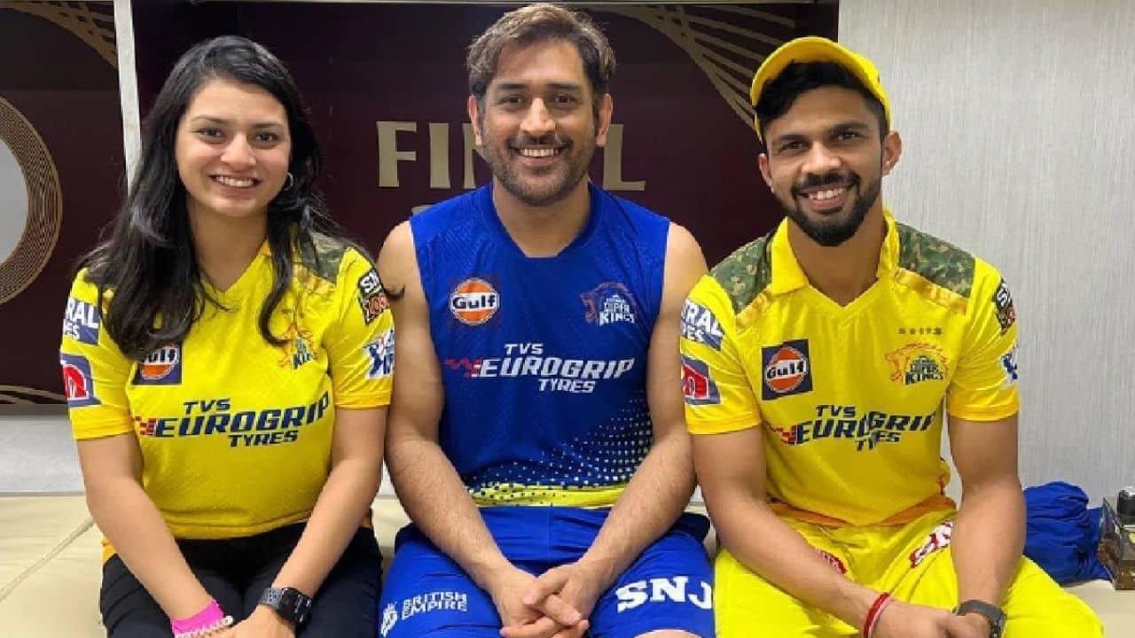 নেটদুনিয়ায় ভাইরাল ভিডিয়োতে দেখা গিয়েছে, ফাইনালের শেষে মাঠের মধ্যেই সিএসকের ক্রিকেটাররা সেলিব্রেশন করছেন। সেই সময় ঋতুরাজের বাগদত্তা উৎকর্ষা পাওয়ার পৌঁছে যান ধোনির কাছে। মাহি তাঁকে জড়িয়ে ধরেন। এর পর ধোনির পা ছুঁয়ে প্রণাম করেন উৎকর্ষা। আচমকা এমন পরিস্থিতিতে পড়ে হকচকিয়ে যান ধোনি। এরপর ধোনি হাত তুলে ঋতুরাজের দিকে কিছু একটা ইশারা করেন। আর দেখা যায় ঋতু হাসতে হাসতে পিছনে চলে যান।