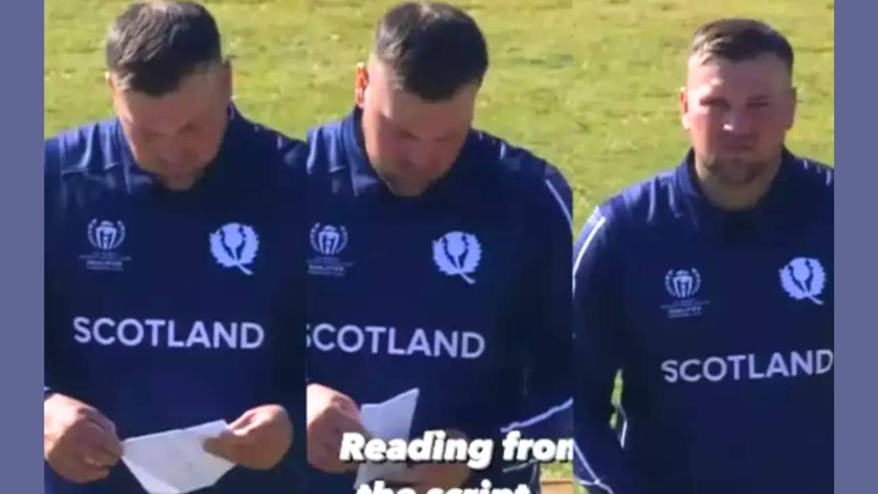 হারারে: পরীক্ষা দিতে যাওয়ার আগে শেষবার বই, খাতায় চোখ বুলিয়ে নেওয়া স্বাভাবিক। আবৃত্তি বা অভিনয়ের জন্য স্টেজে উঠে কাগজে চোখ বুলিয়ে নিতে হয়। কিন্তু ২২ গজে কখনও এমন ঘটনা দেখেছেন? অবাক মনে হলেও এমনটাই ঘটেছে জিম্বাবোয়েতে চলতি ওডিআই বিশ্বকাপ কোয়ালিফায়ার ম্যাচে। বোলার প্রথমে পকেট থেকে কাগজ বের করলেন তাতে চোখ বুলিয়ে কিছু একটা পড়ে নিলেন। তারপর বল করলেন। তিনি হলেন স্কটল্যান্ডের বোলার মার্ক ওয়াট। সংযুক্ত আরব আমিরশাহির বিরুদ্ধে ম্যাচে এভাবে কাগজের টুকরো বের করে মাঠেই পড়তে দেখা গিয়েছে মার্ককে। কাগজ পড়ে বল করে একটি উইকেটও পান তিনি। ওই মুহূর্তের ভিডিয়ো ছড়িয়ে পড়েছে সোশ্যাল মিডিয়ায়। খোদ আইসিসি ভিডিয়ো শেয়ার করেছে।